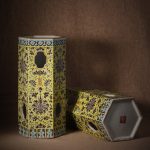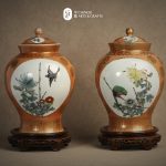 光緒珊瑚紅描金開窗花鳥紋蓋罐