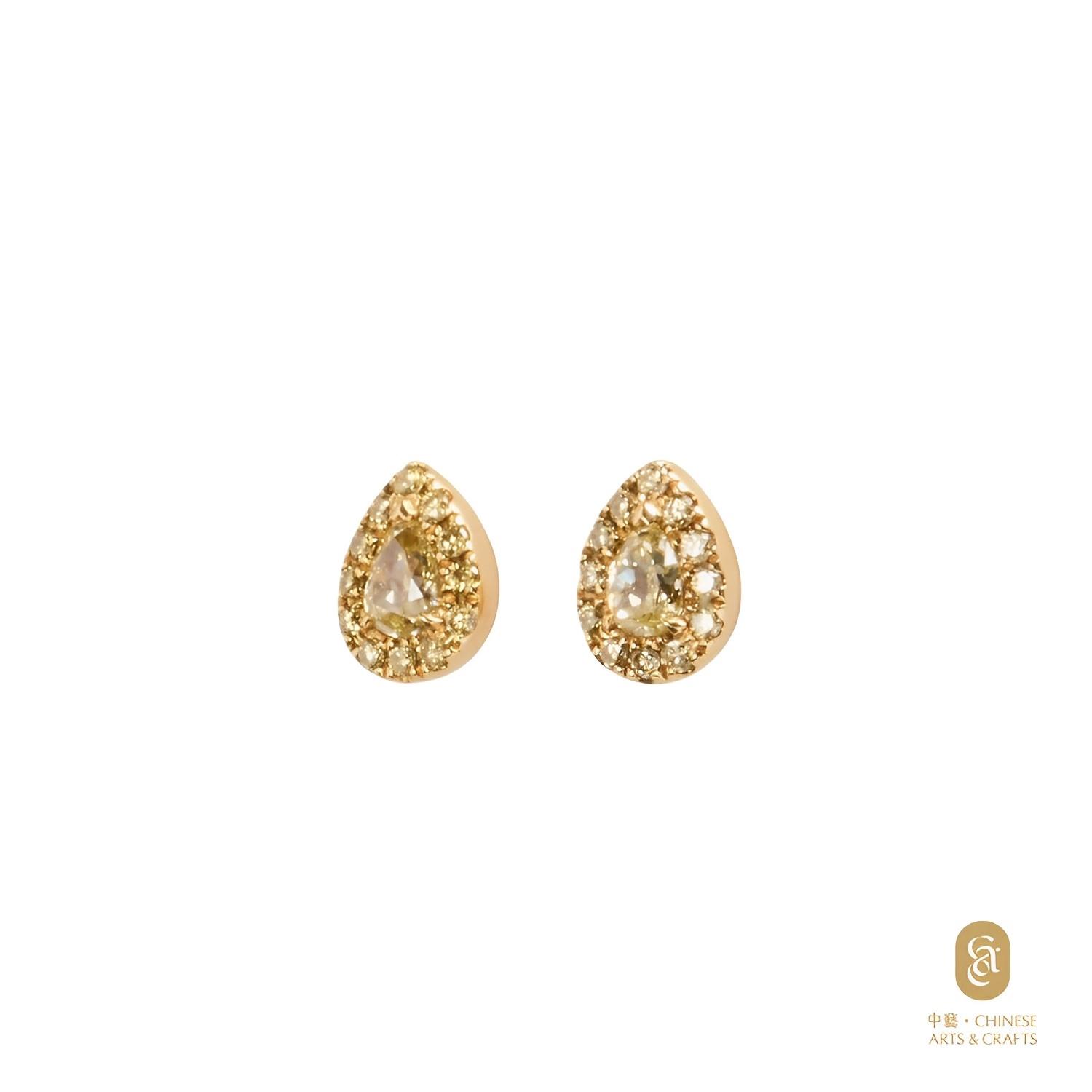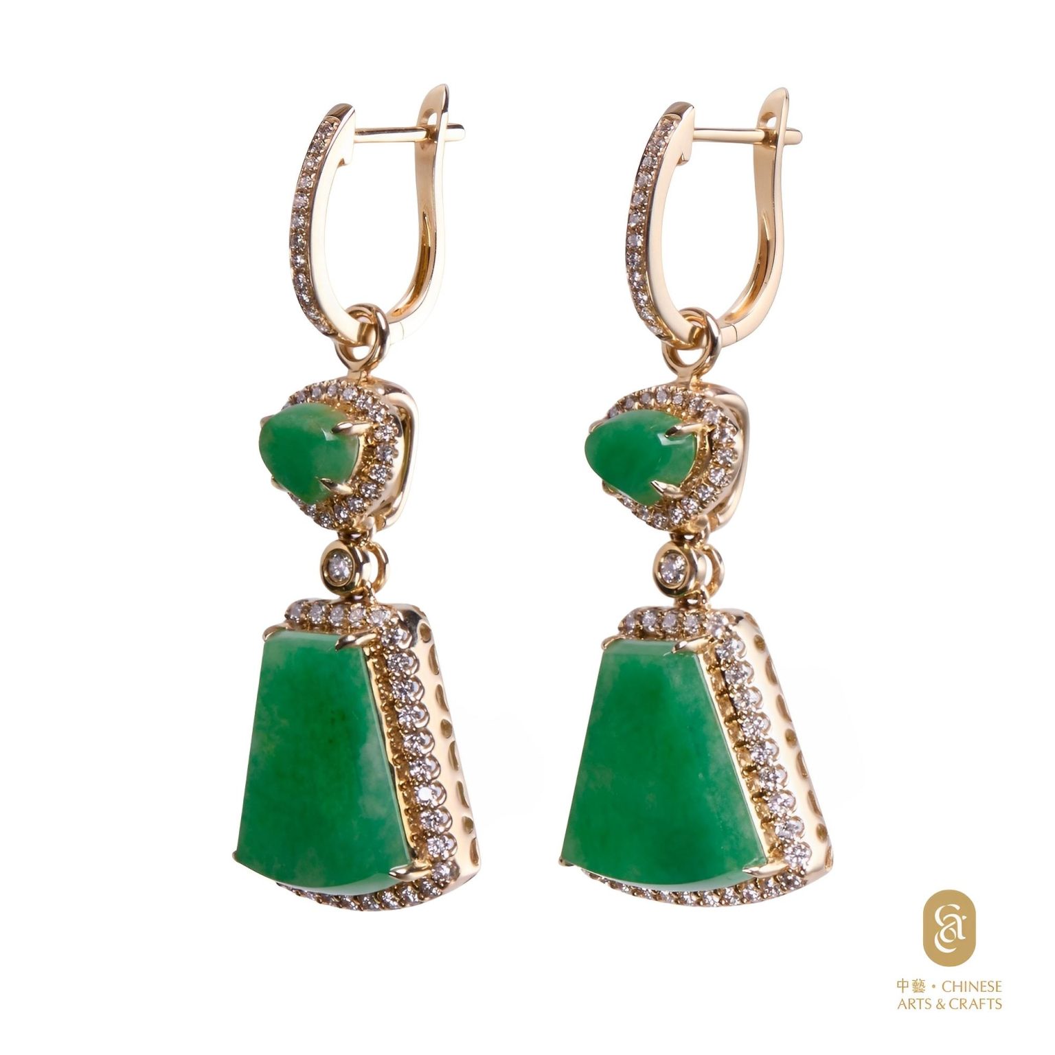 14K黃金鑲天然翡翠(A)玉 冰圈鑽石耳環