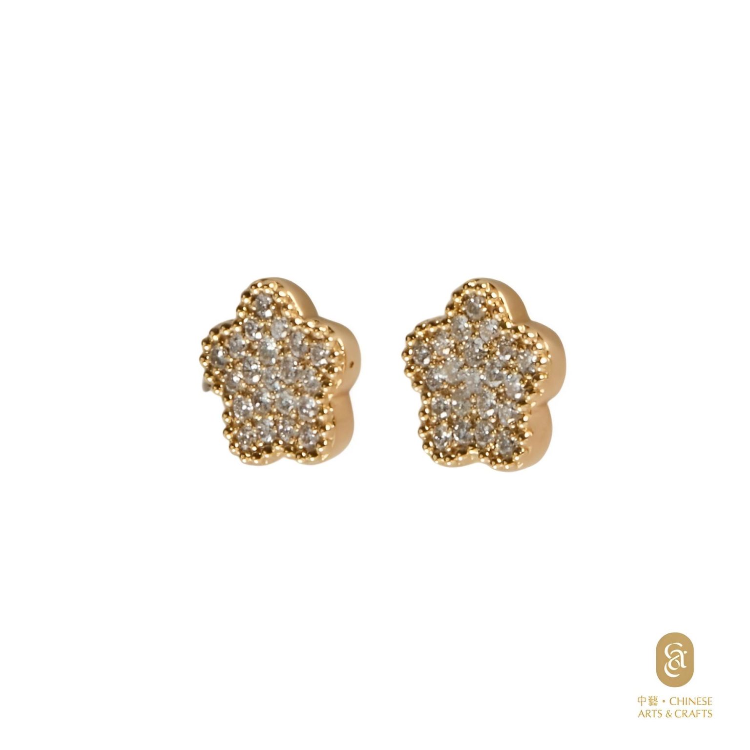 18K黃金鑲淡水養珠鑽石花款耳環9.25mm
