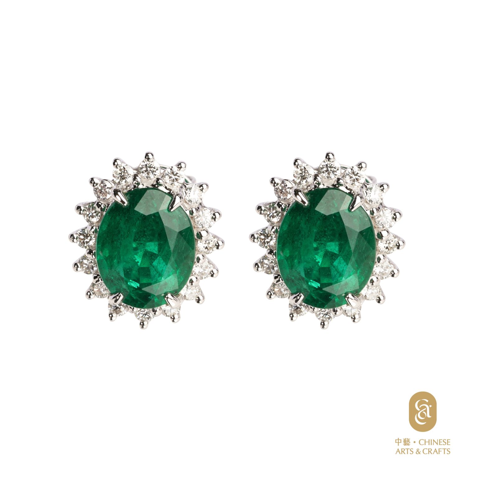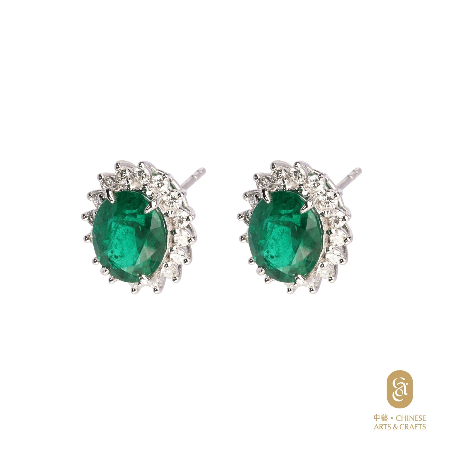 14K白色黃金鑲天然翡翠(A)玉-冰圈鑽石耳勾