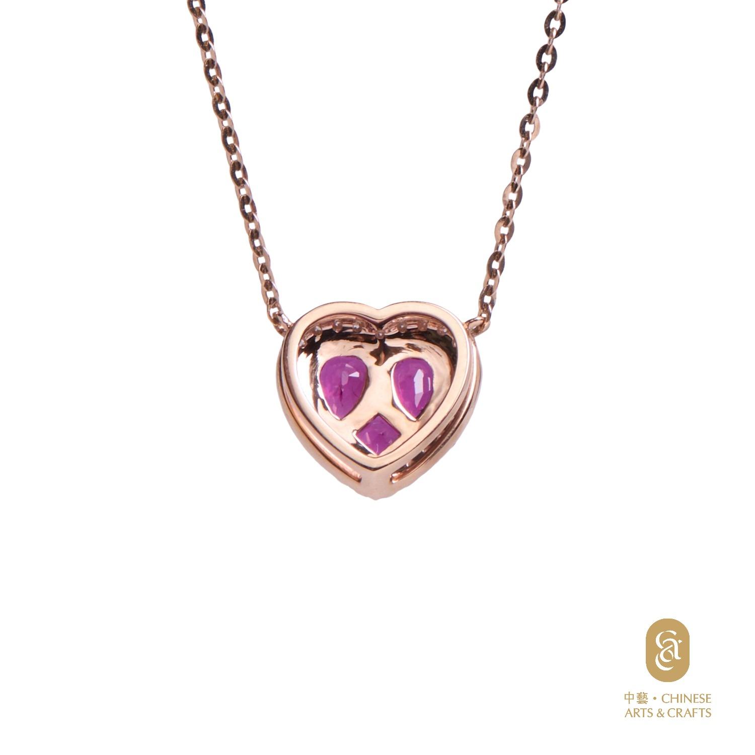 18K玫瑰金鑲紅寶石鑽石心形項鍊