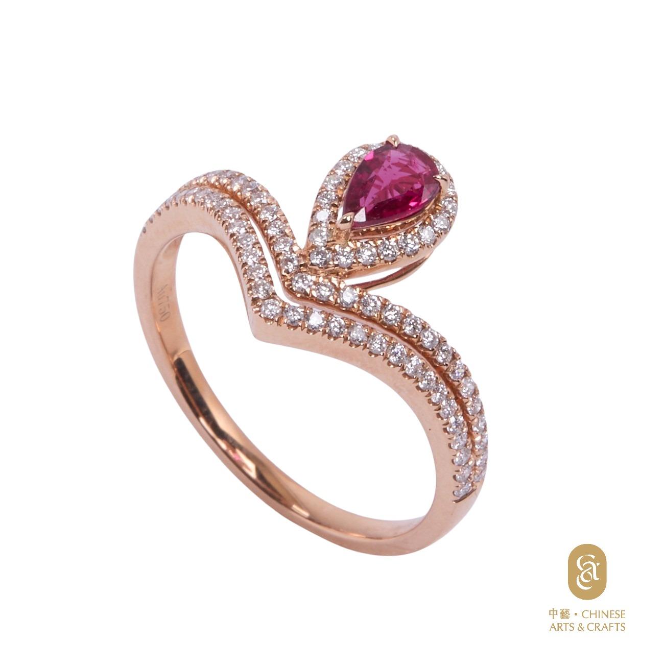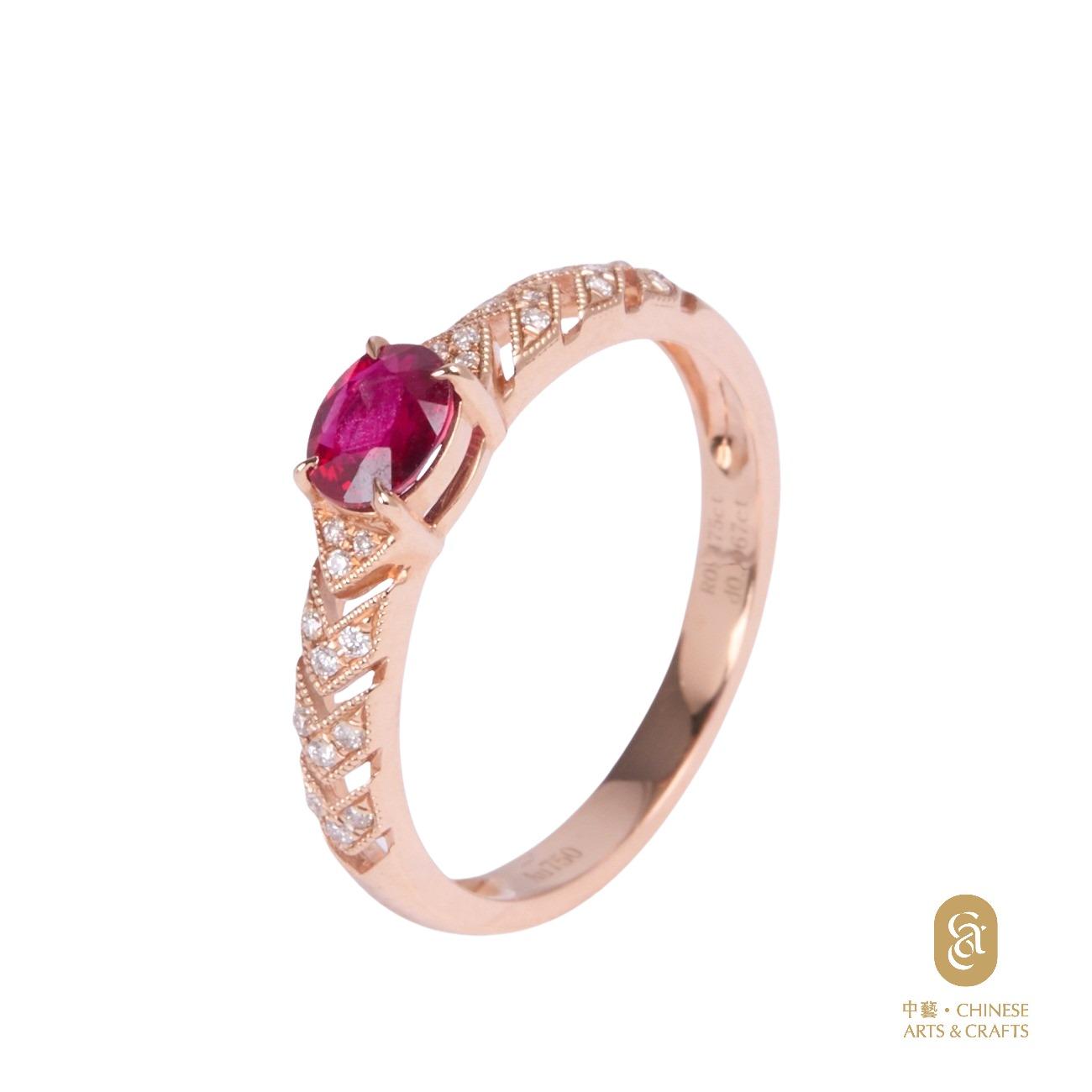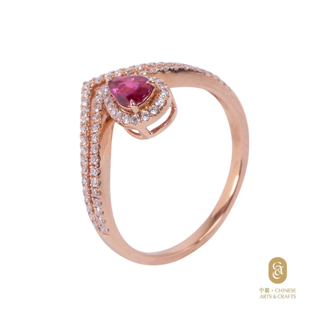 18K玫瑰金鑲紅寶石 鑽石花款戒指