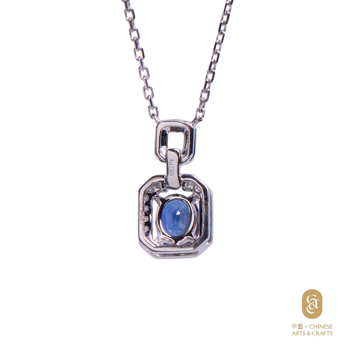 18K白色黃金鑲藍寶石鑽石項鍊