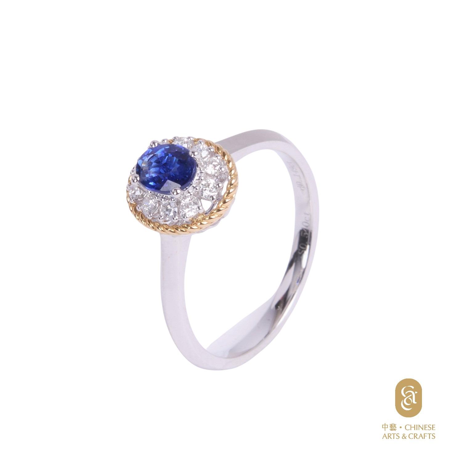 18K黃金鑲 藍寶石鑽石花款戒指