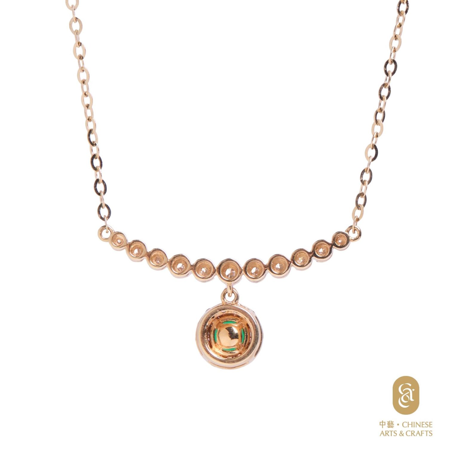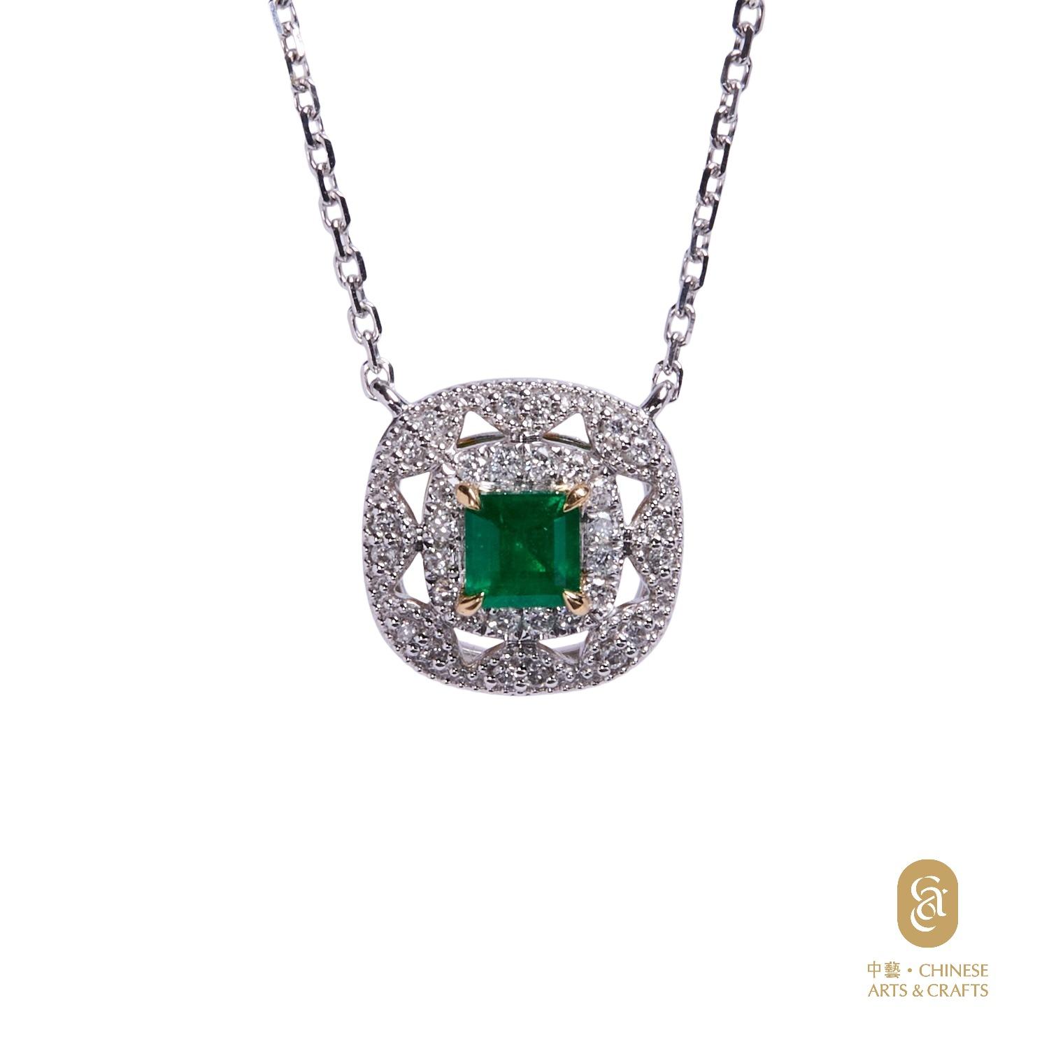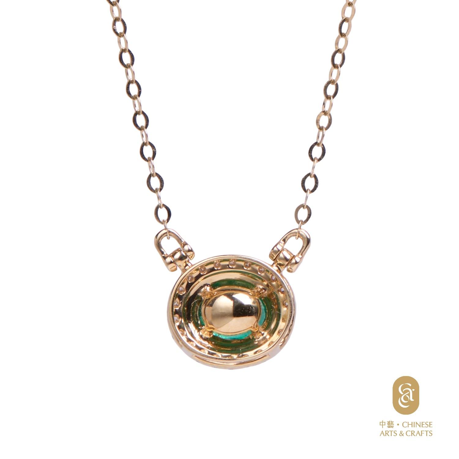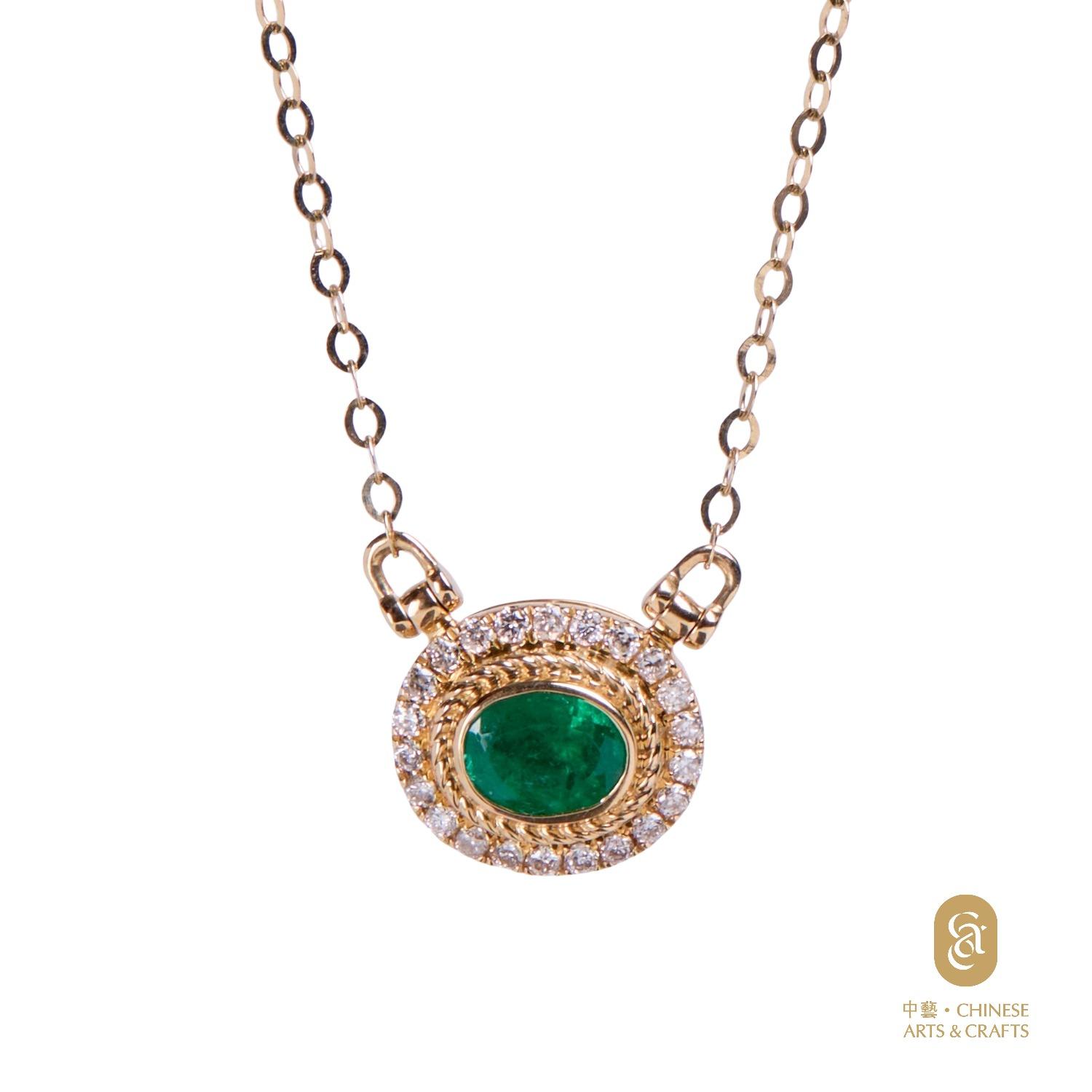 18K黃金鑲-祖母綠鑽石花款項鍊
