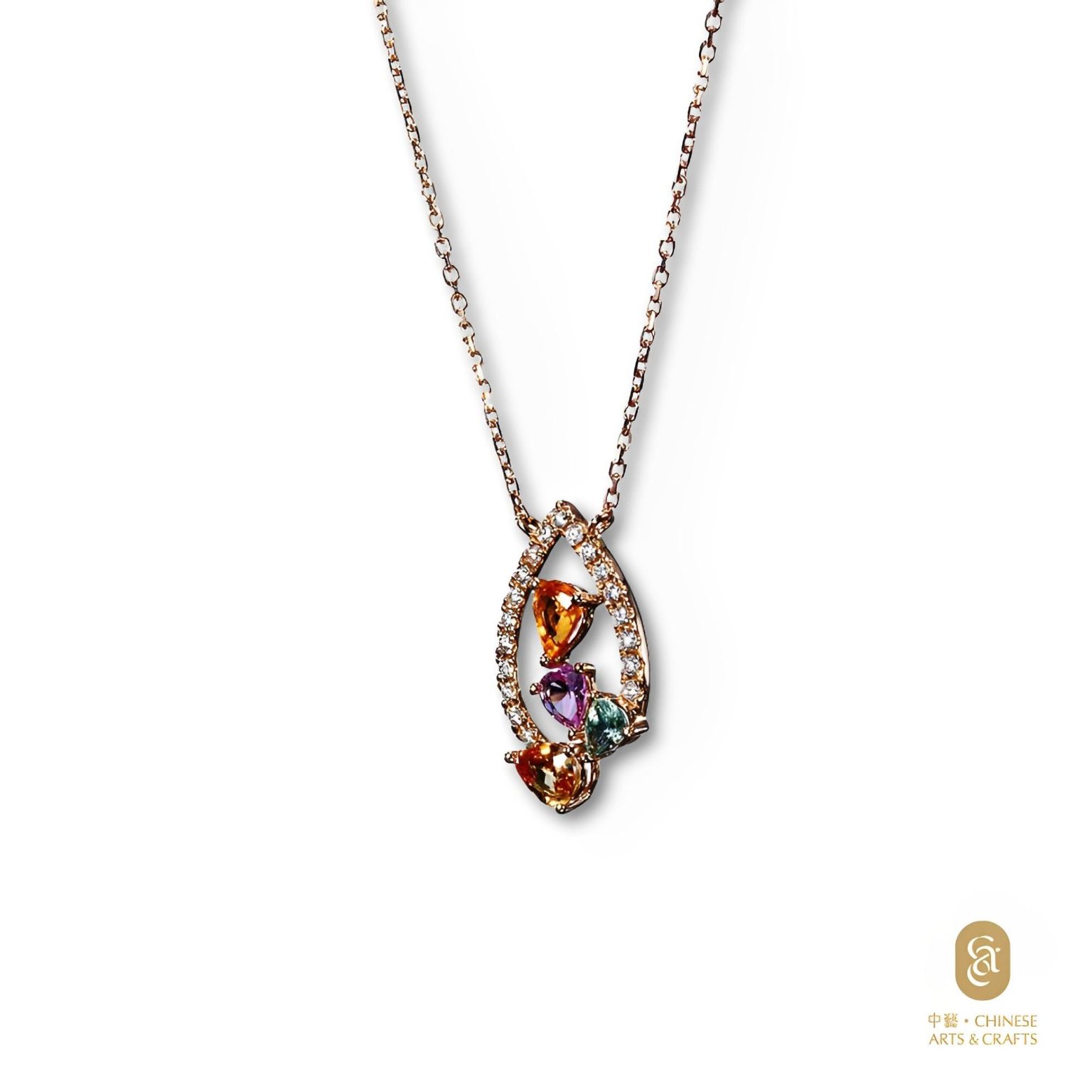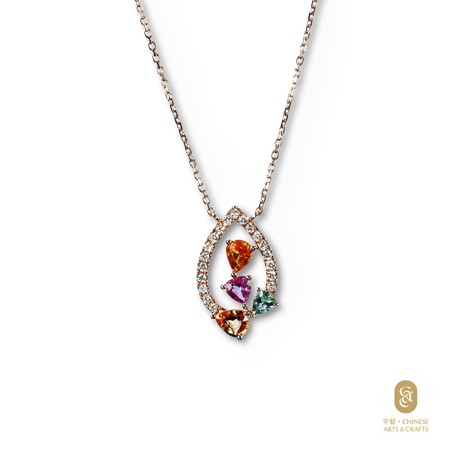 18K玫瑰金鑲 彩色藍寶石花款鑽石項鍊