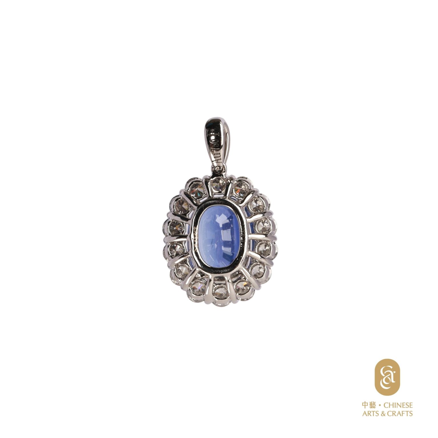 18K白色黃金鑲藍寶石鑽石吊墜(附GRS証書)