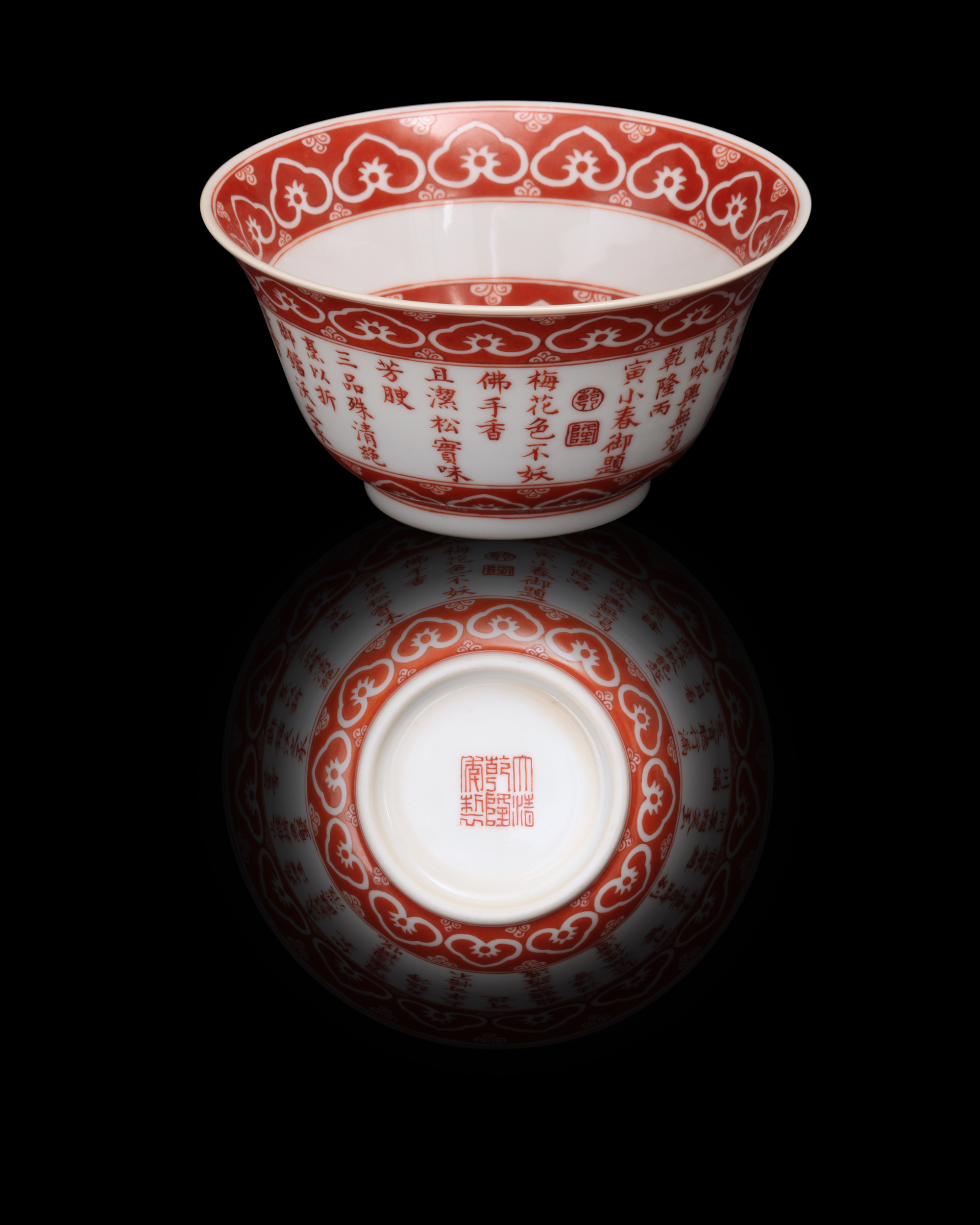 / 【中藝珍品】乾隆款礬紅彩禦題詩三清茶碗