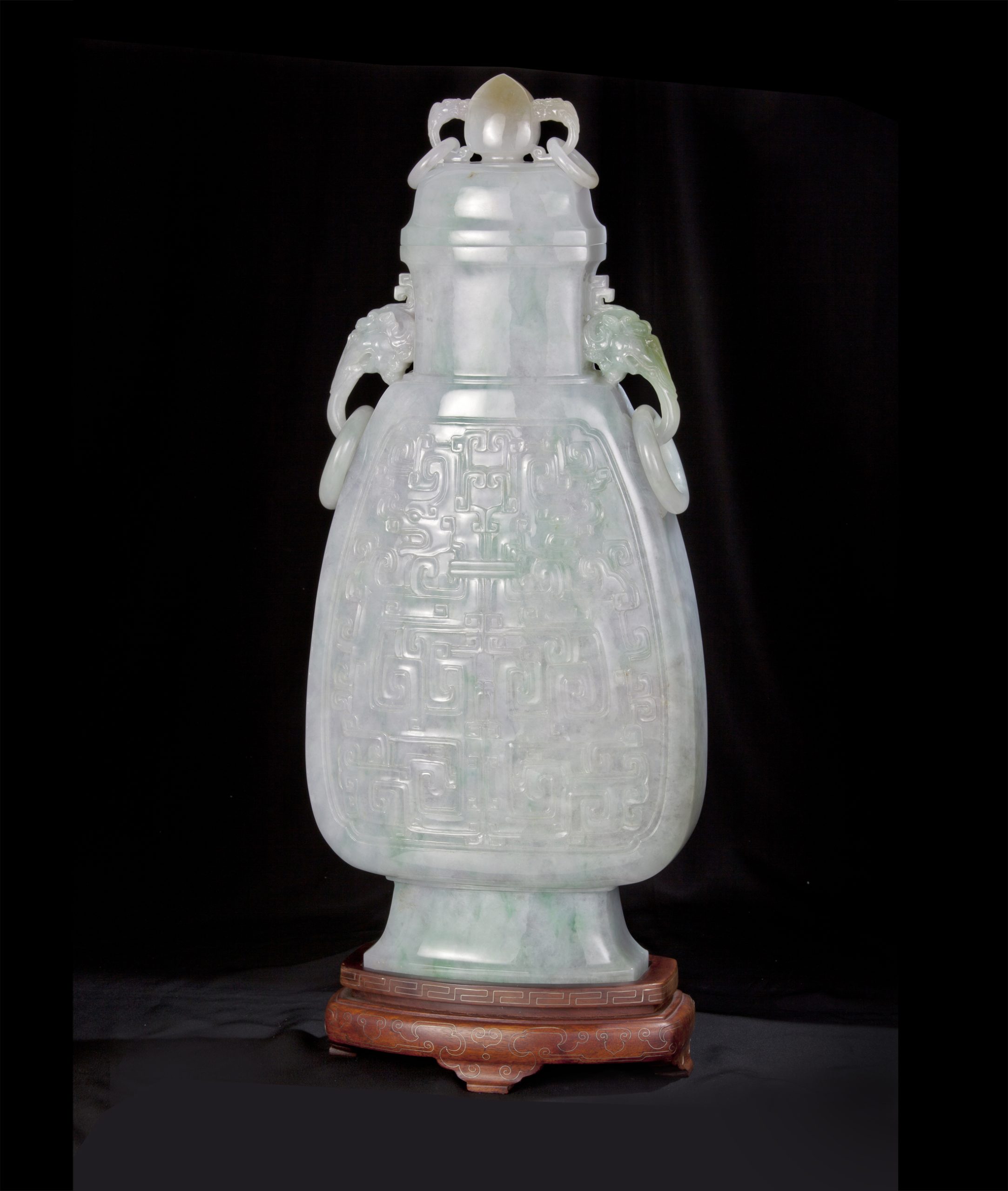 【中藝珍品】天然翡翠擺件 – 仿古雙耳瓶 (柳朝國)