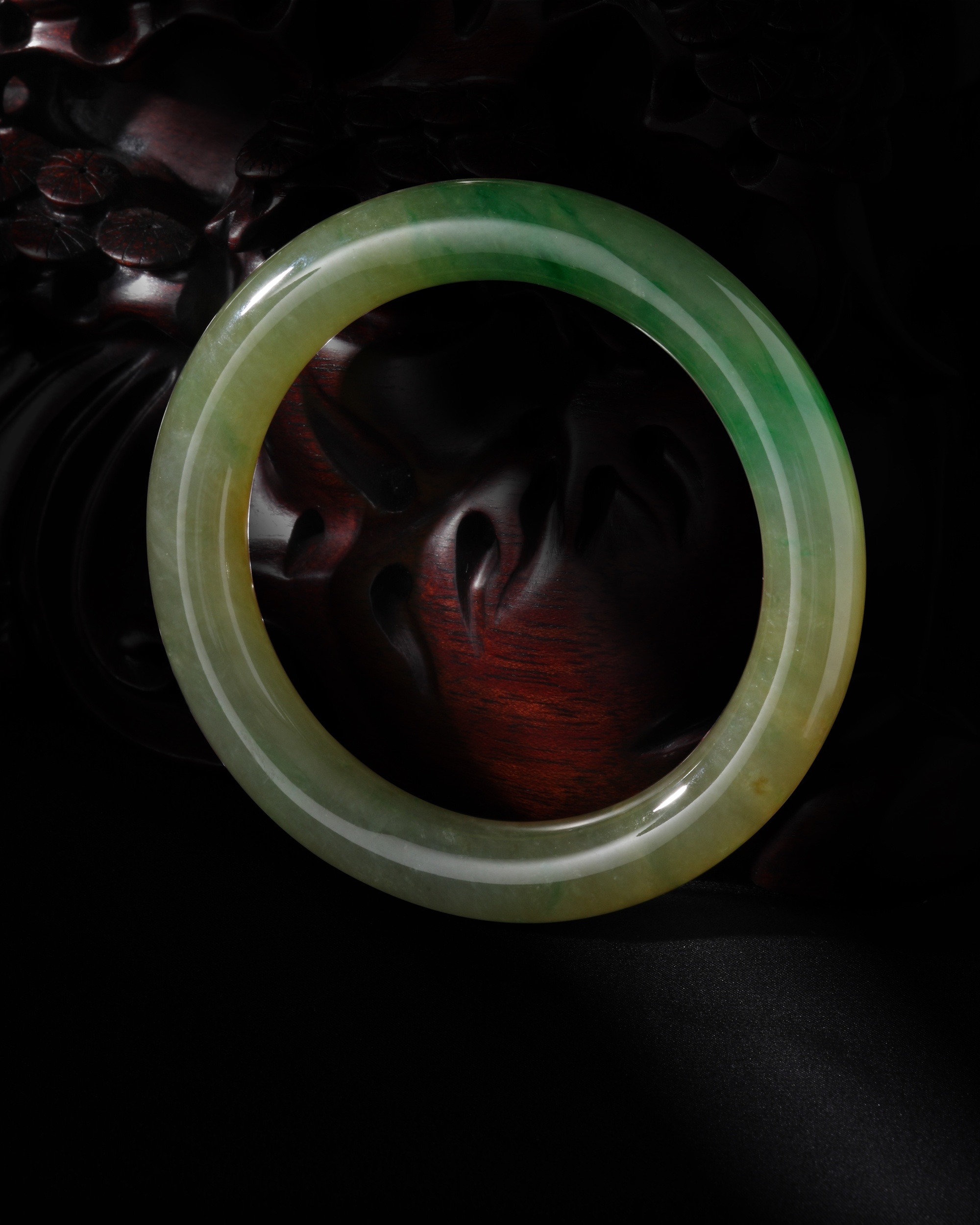 / 【中藝珍品】天然翡翠(A玉)三彩圓鐲 1.55 64g