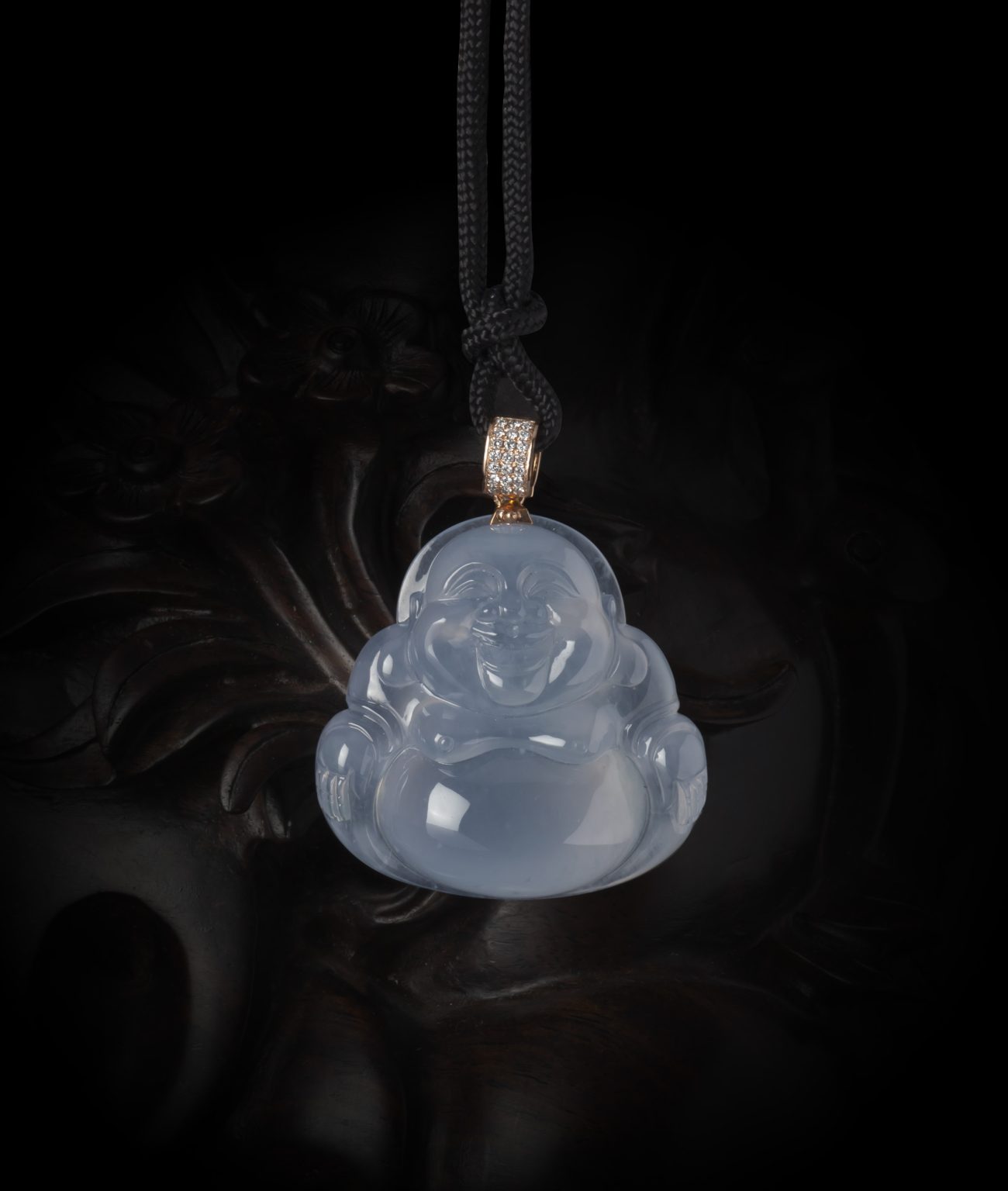 【中藝珍品】天然翡翠(A玉)冰藍佛公吊墜 22.04g
