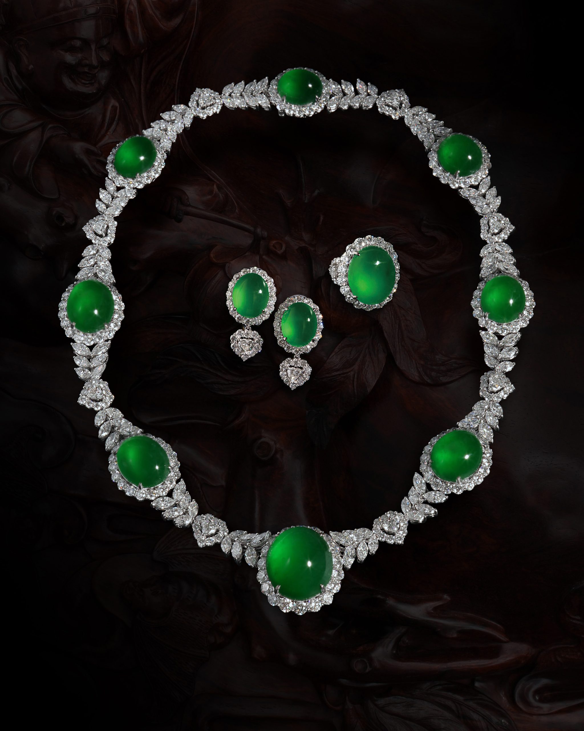 【中藝珍品】天然翡翠(A玉)八旦面項鏈/戒/耳套裝 總重量198.24g
