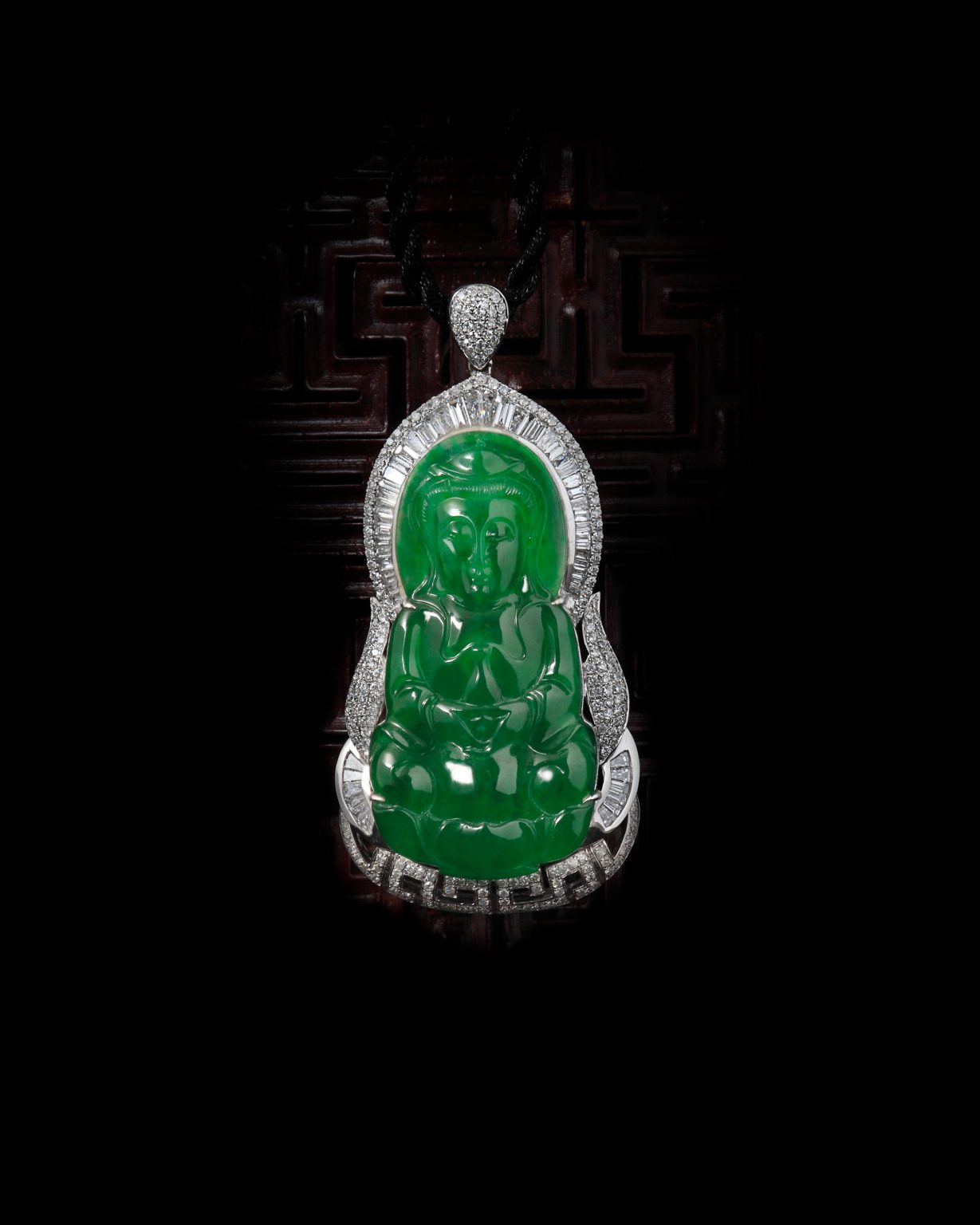 【中藝珍品】天然翡翠(A玉)觀音吊墜連繩鏈 22.63g