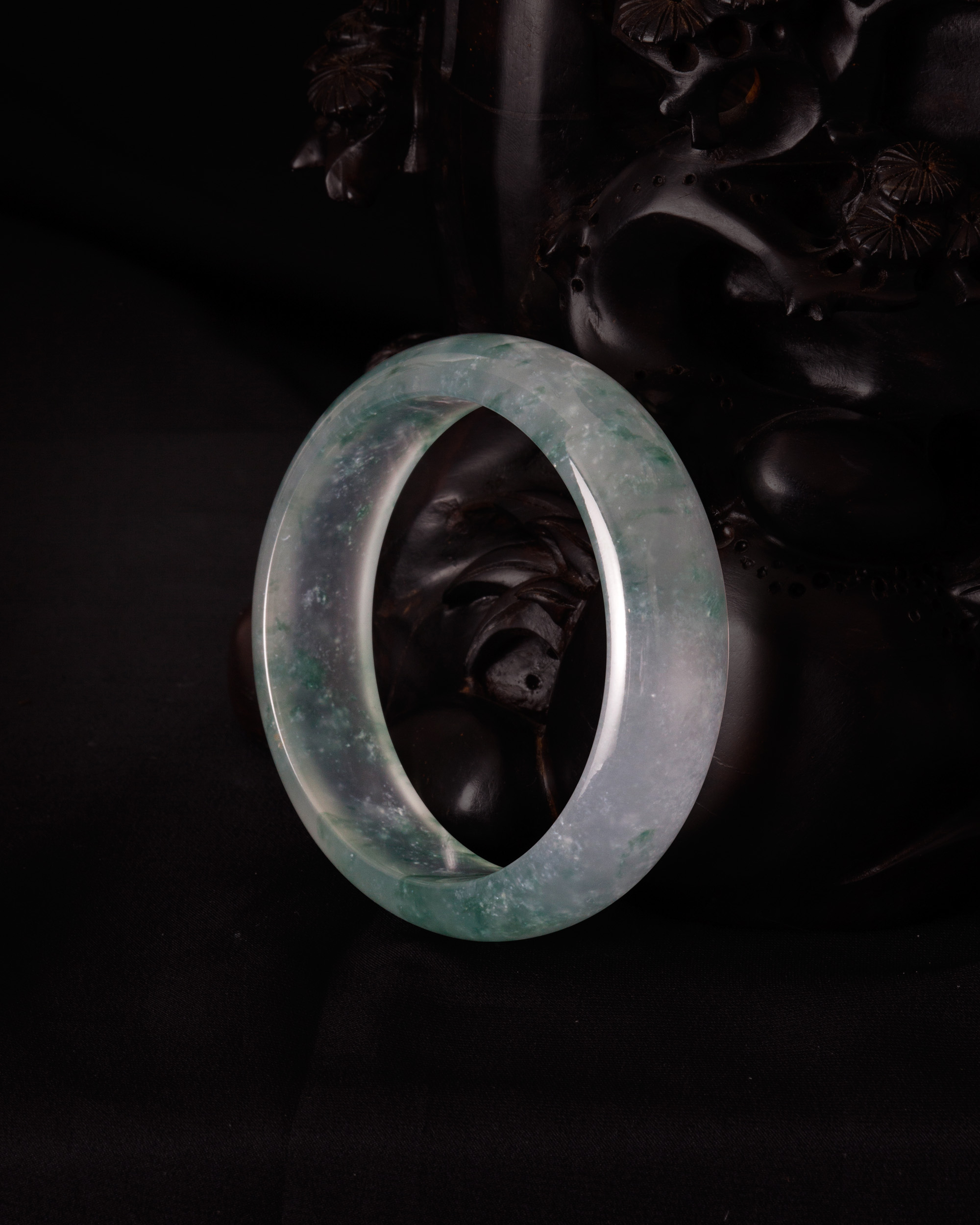 / 【中藝珍品】天然翡翠(A玉)冰藍花福鐲 1.55 73.42g