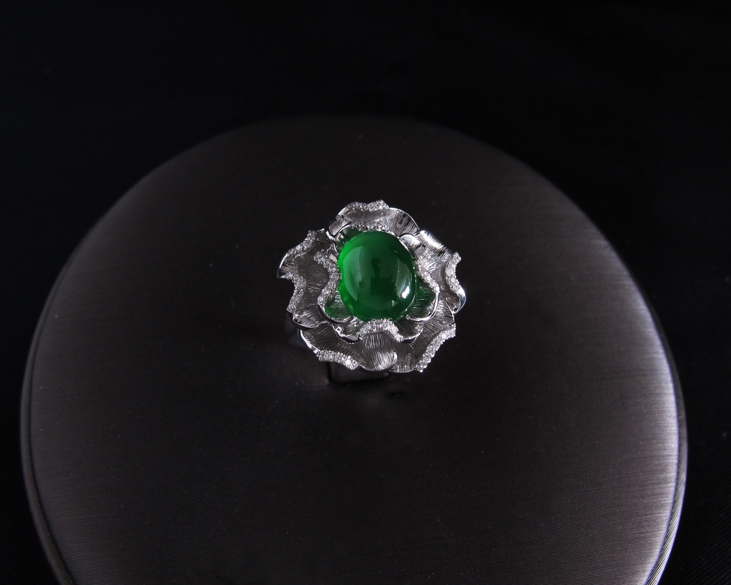 / 【中藝珍品】天然翡翠(A玉)旦面戒指 10.38g