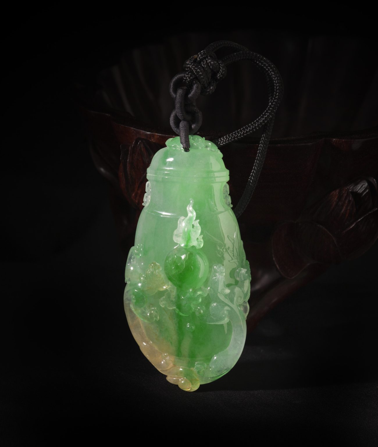 【中藝珍品】天然翡翠(A玉)二龍戲珠瓶三彩花件 87.32g