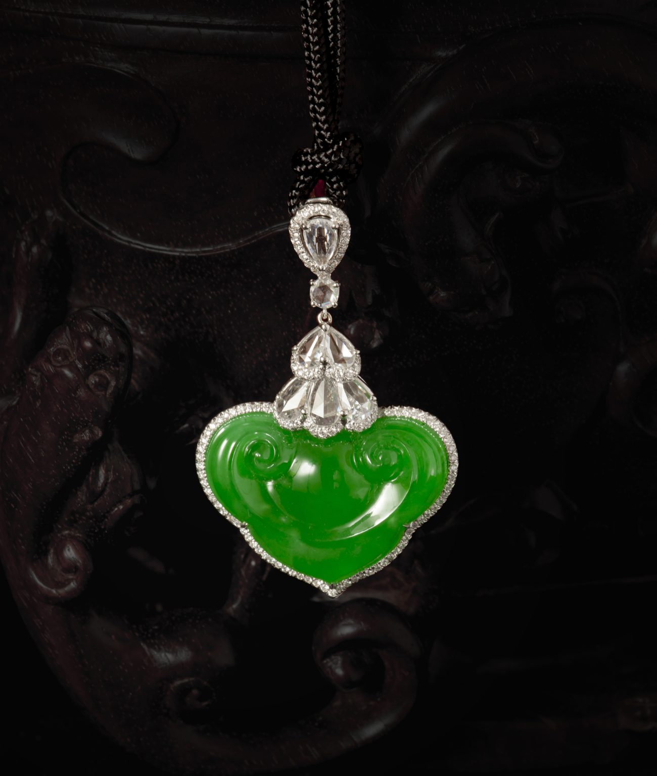 【中藝珍品】天然翡翠(A玉)長壽果猴子件繩項鏈 31.68g