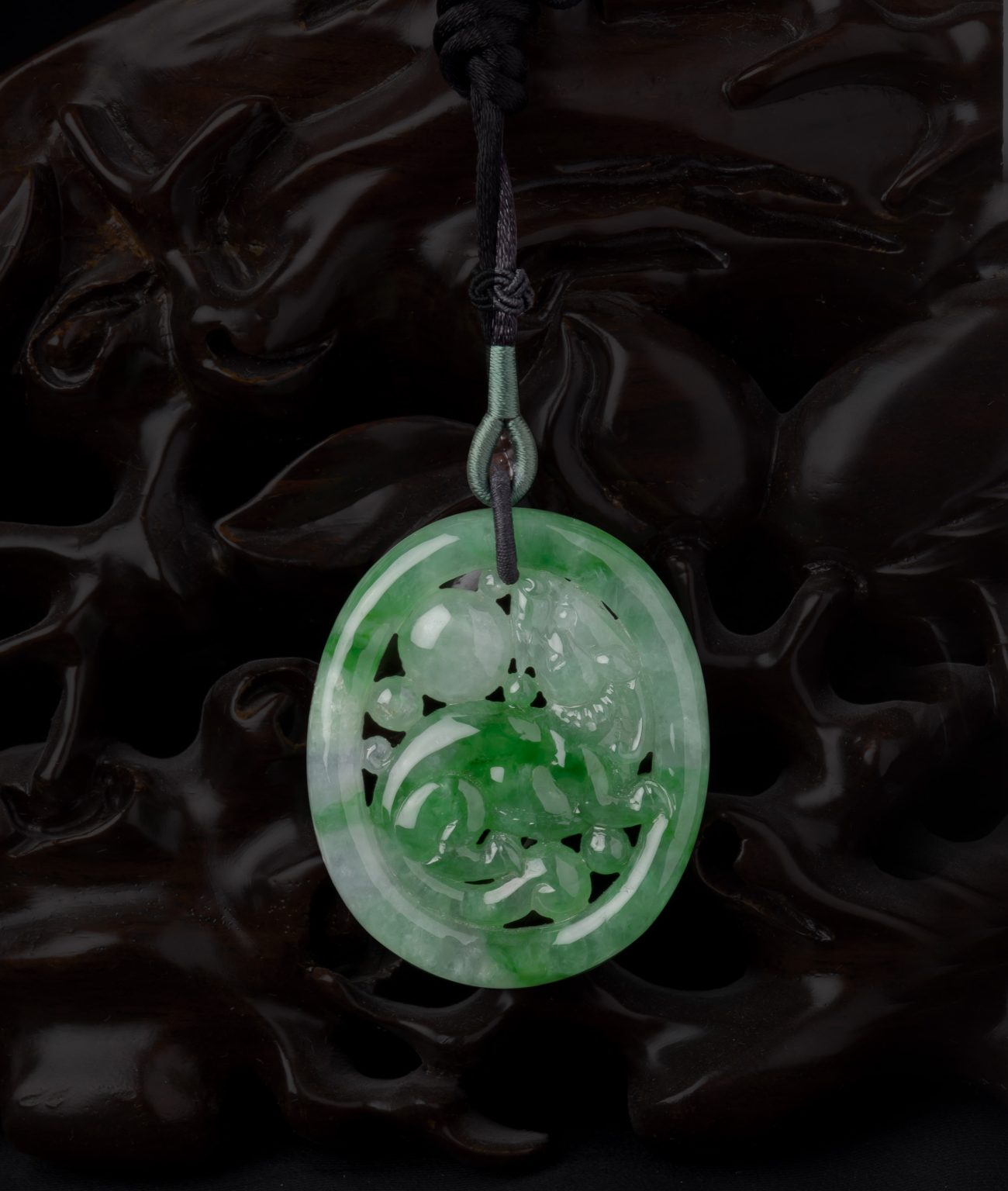 【中藝珍品】天然翡翠(A玉)麒麟橢圓牌繩鏈 33.69g