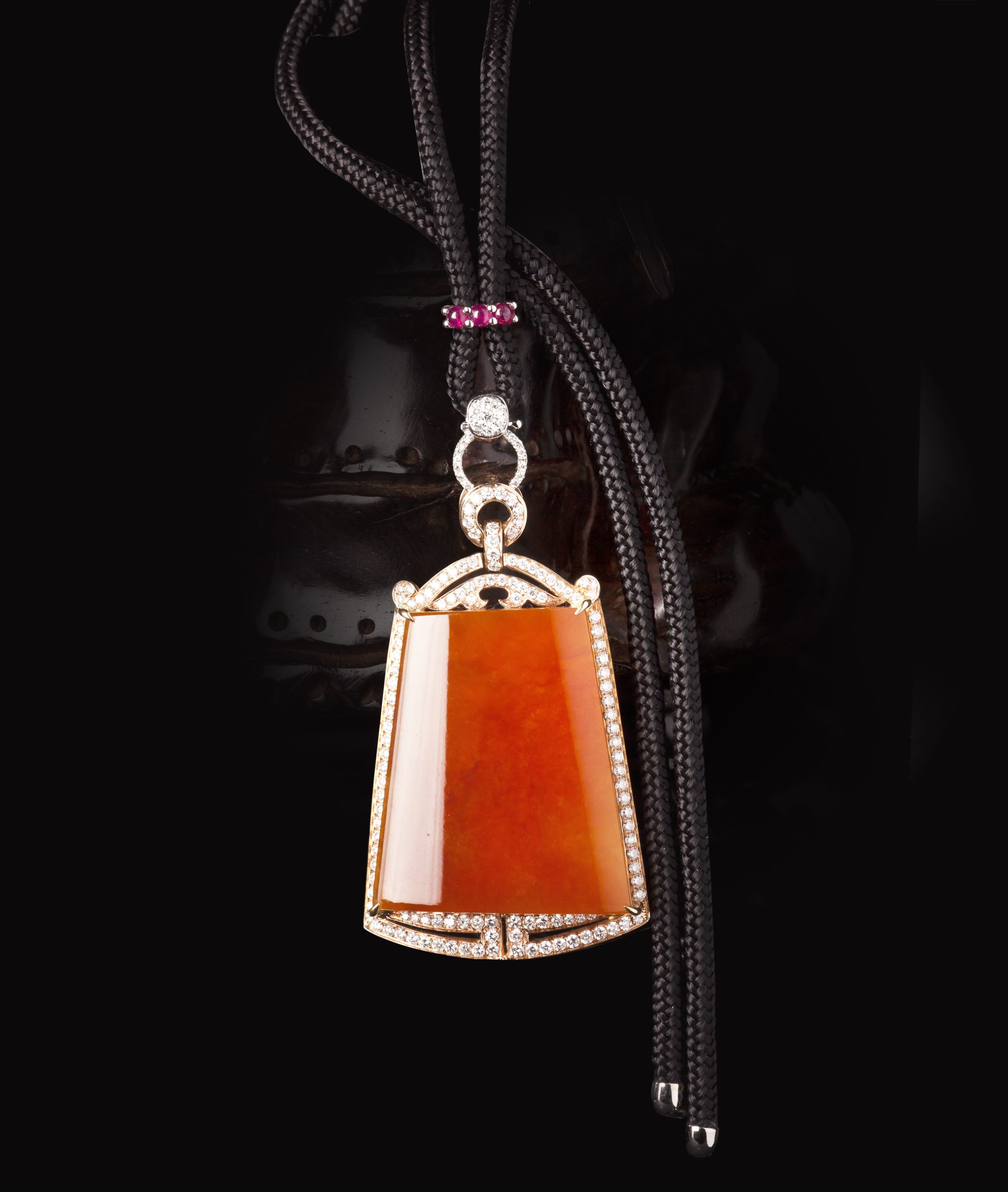 / 【中藝珍品】天然翡翠(A玉)紅玉梯方墜配18K白紅寶繩鏈 30.48g