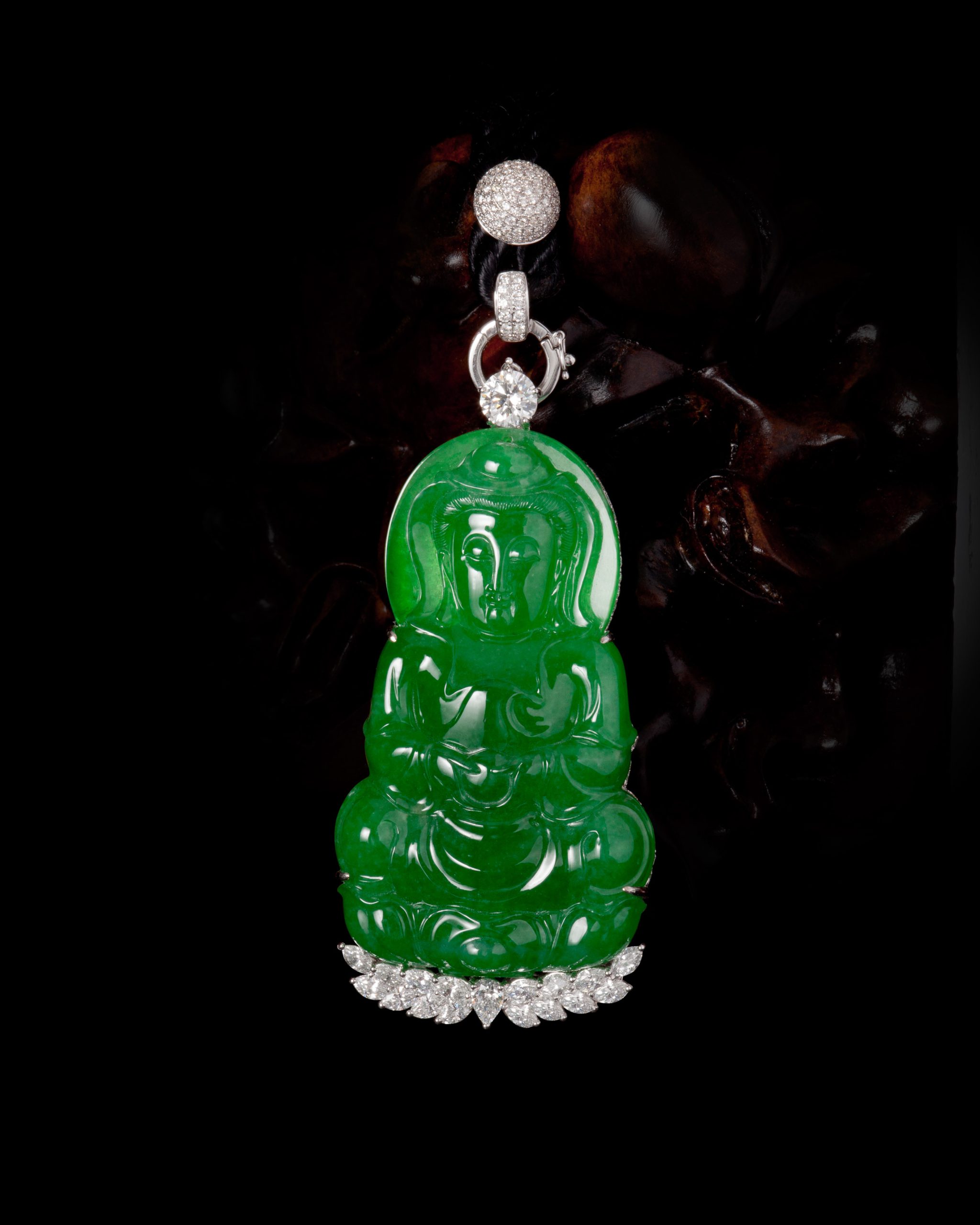 / 【中藝珍品】天然翡翠(A玉)觀音配鑽繩項鏈 85.40g