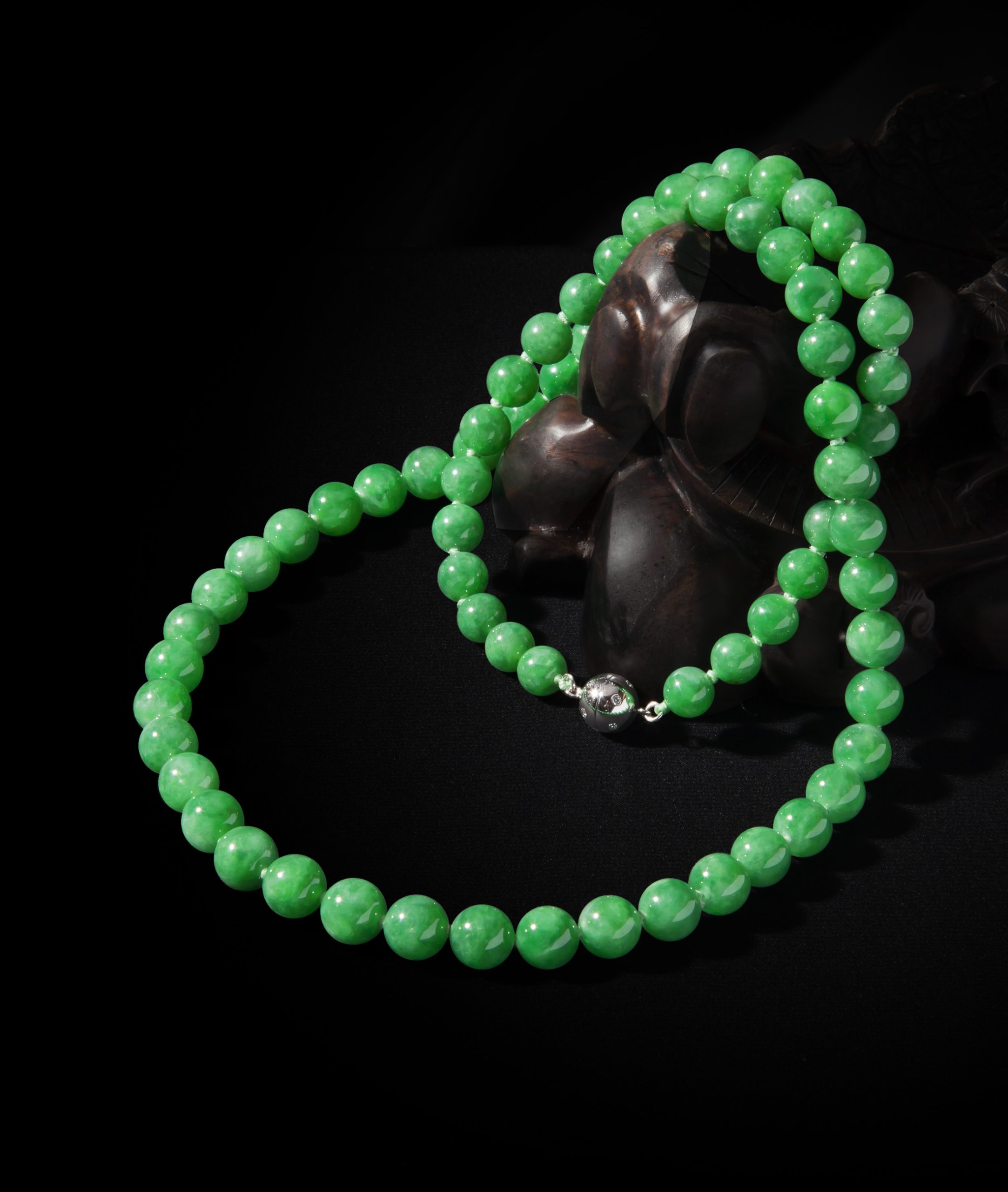 【中藝珍品】天然翡翠(A玉)71粒圓珠項鏈 59.52g 數量