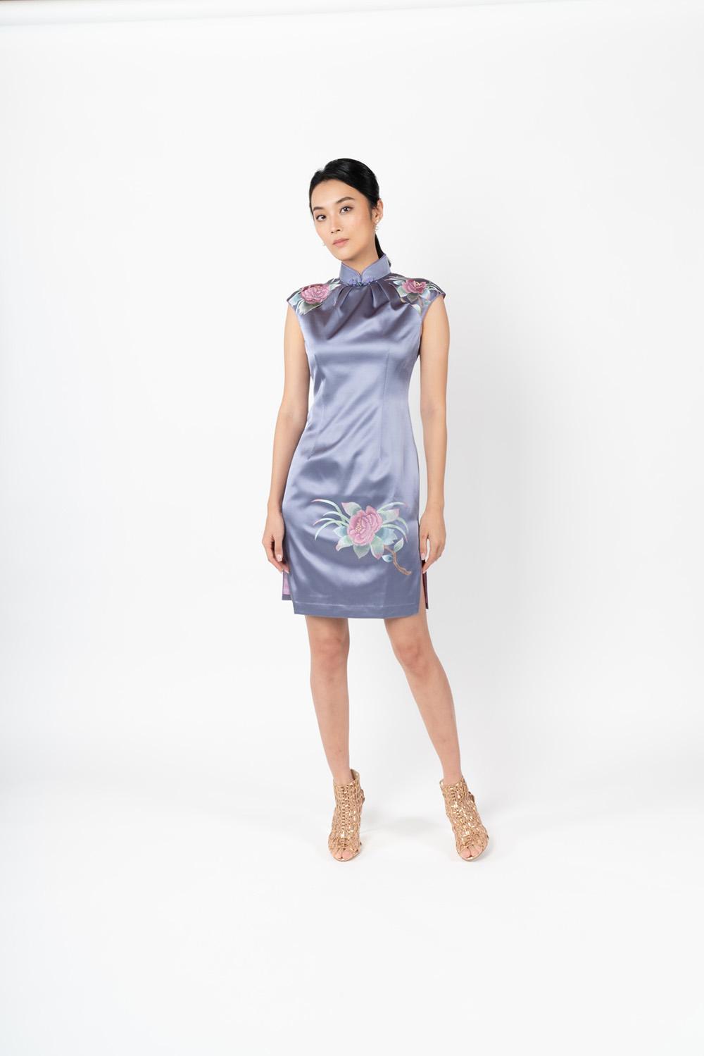 / 天工閣女裝真絲雙肩繡花商務短旗袍