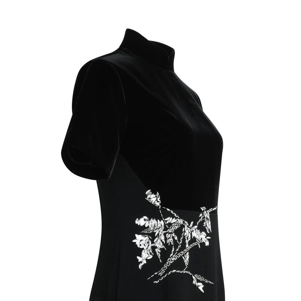 天工閣女裝竹子釘花旗袍(黑)