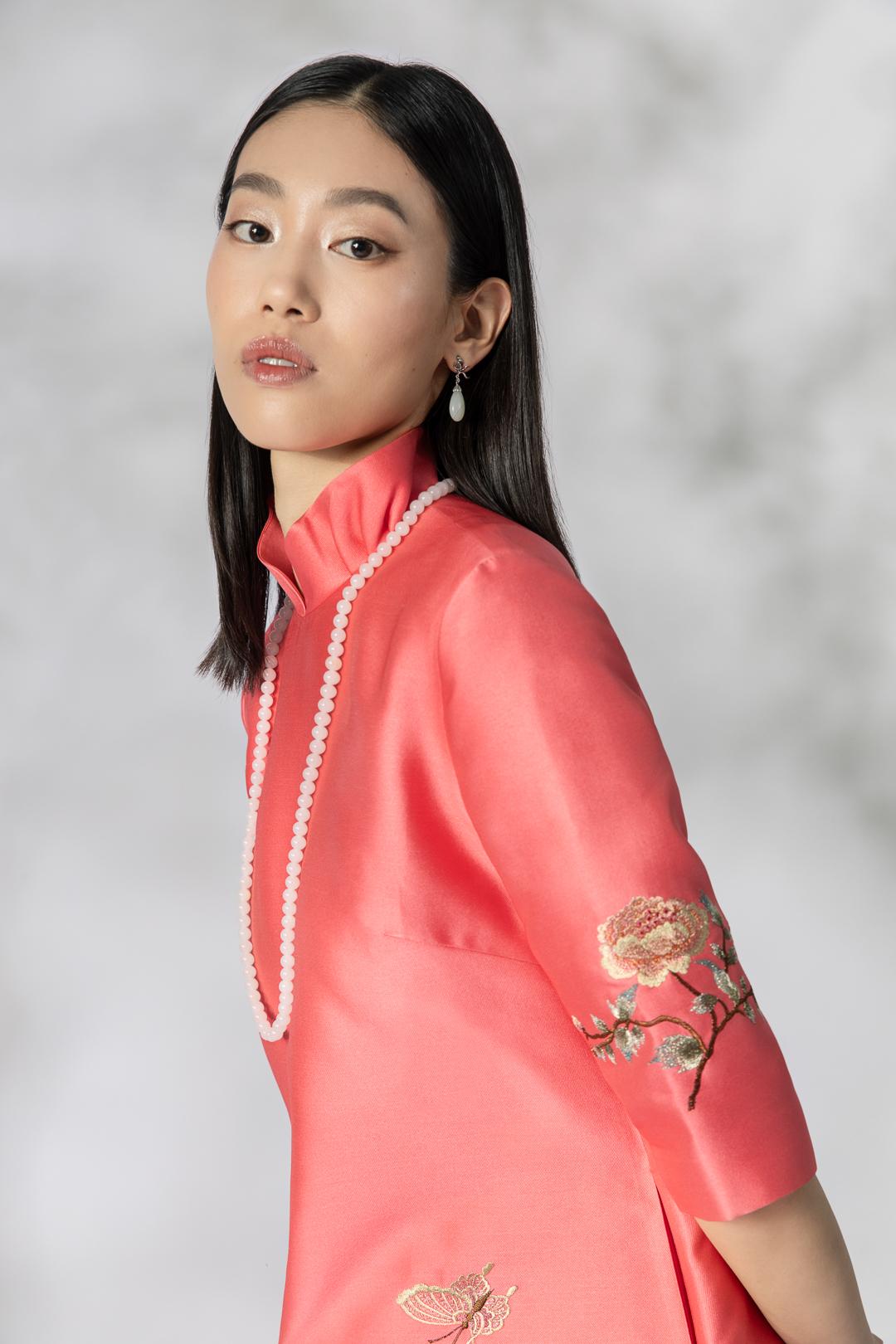 天工閣女裝真絲印花繡花旗袍(藍綠)