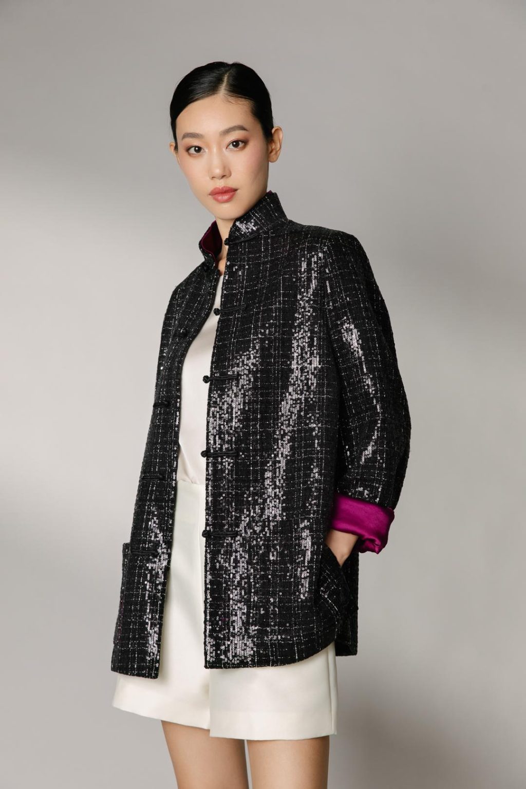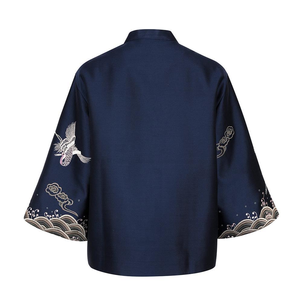 天工閣女裝真絲雙肩繡花商務短旗袍