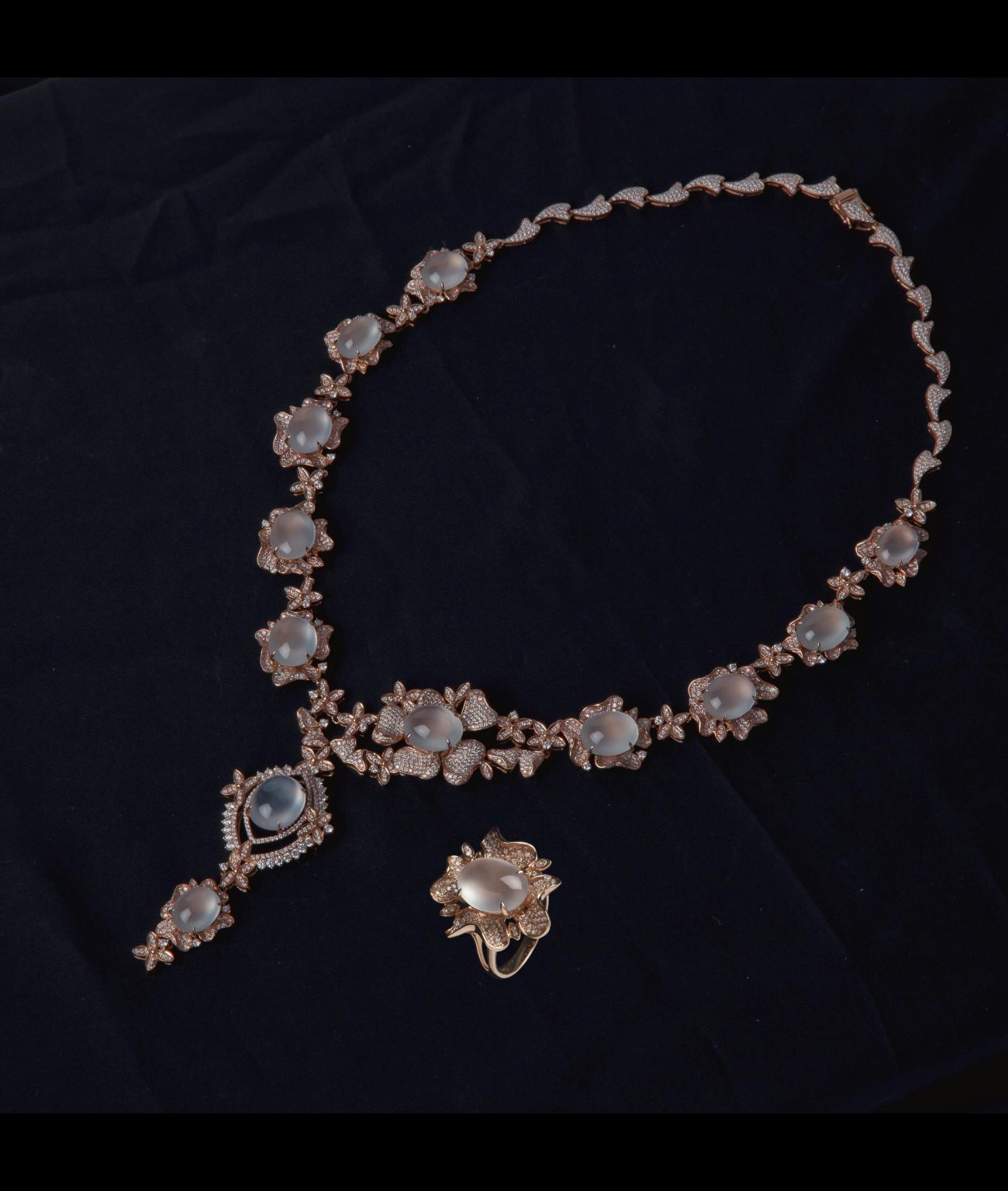天然翡翠(A玉)12冰旦項鏈/戒指套裝 總重量92.34g