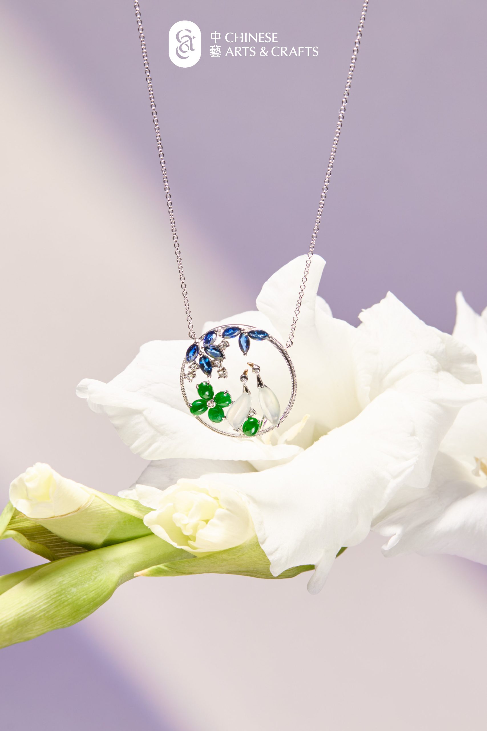 / 【新品】天然翡翠(A玉)仙鶴花款項鏈 6.51g