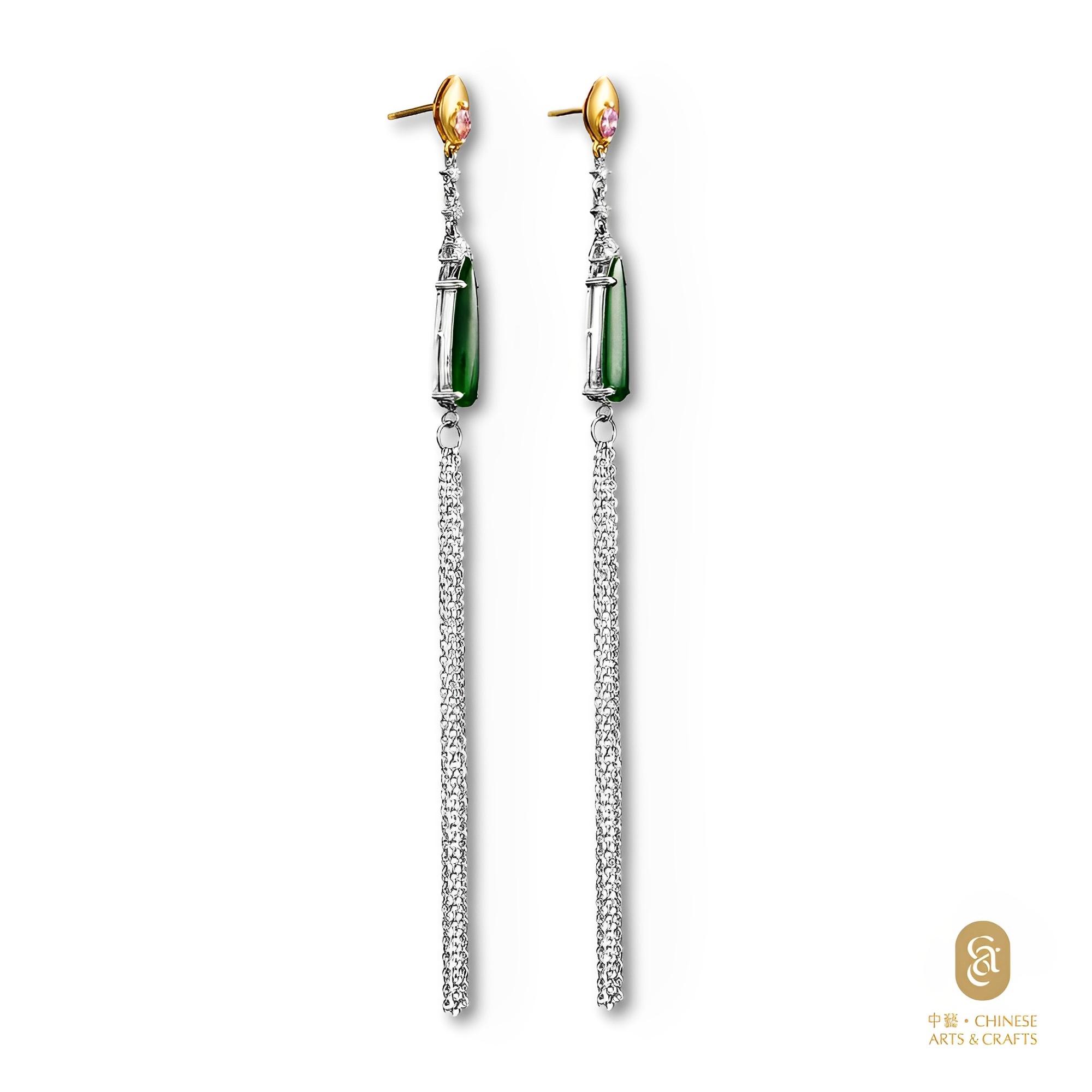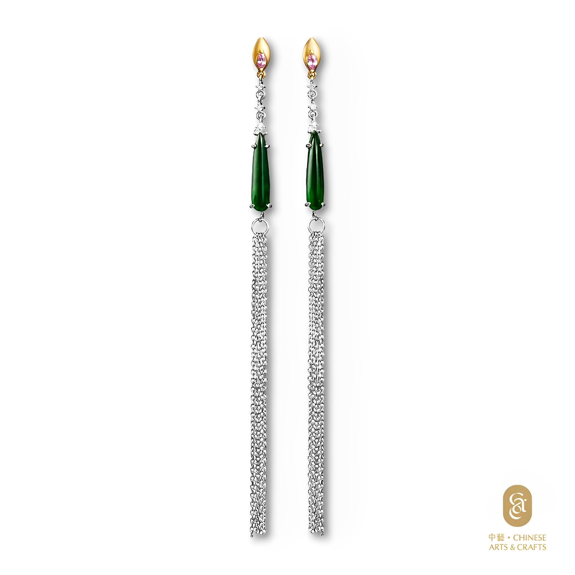 材質: 18K金/ 鑽石/ 天然翡翠(A玉)/ 藍寶石