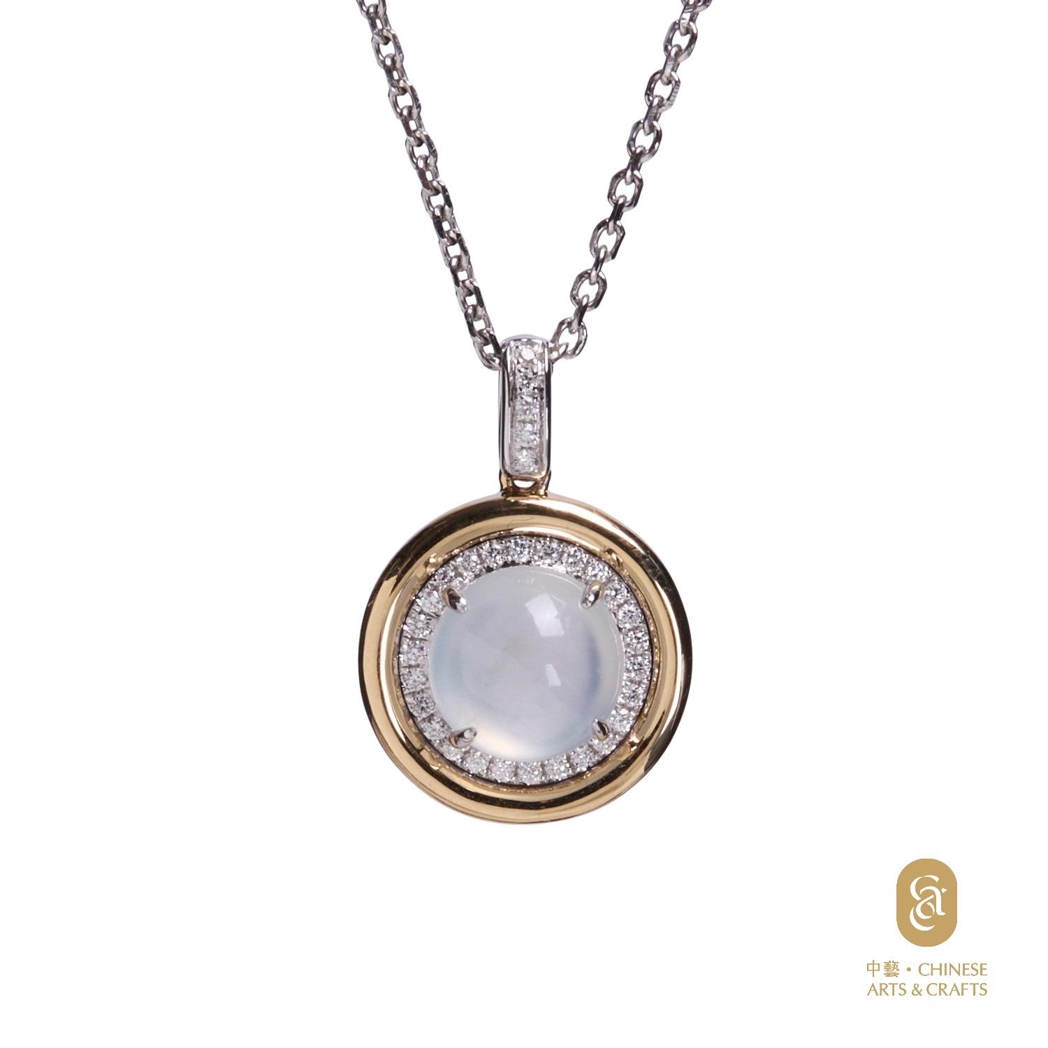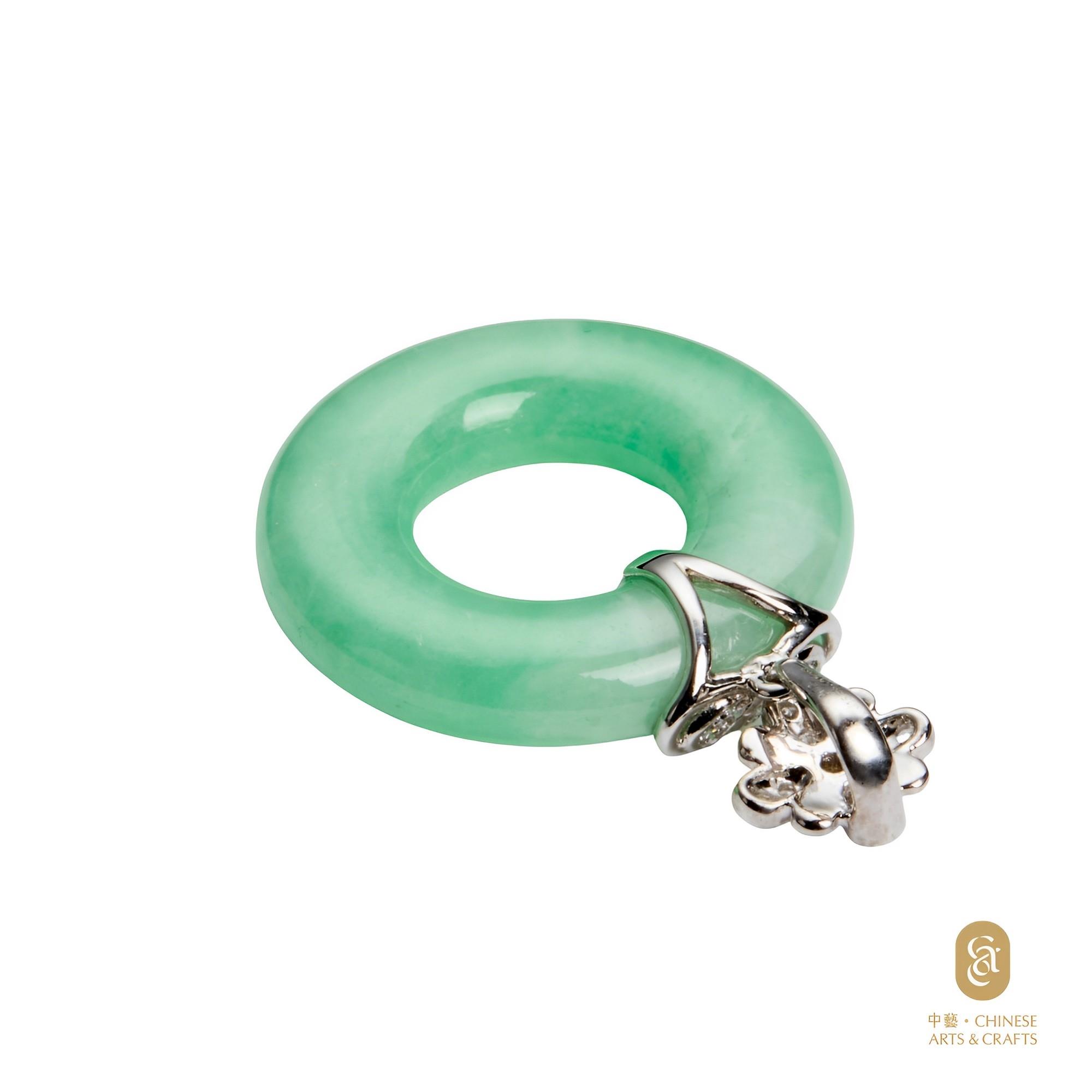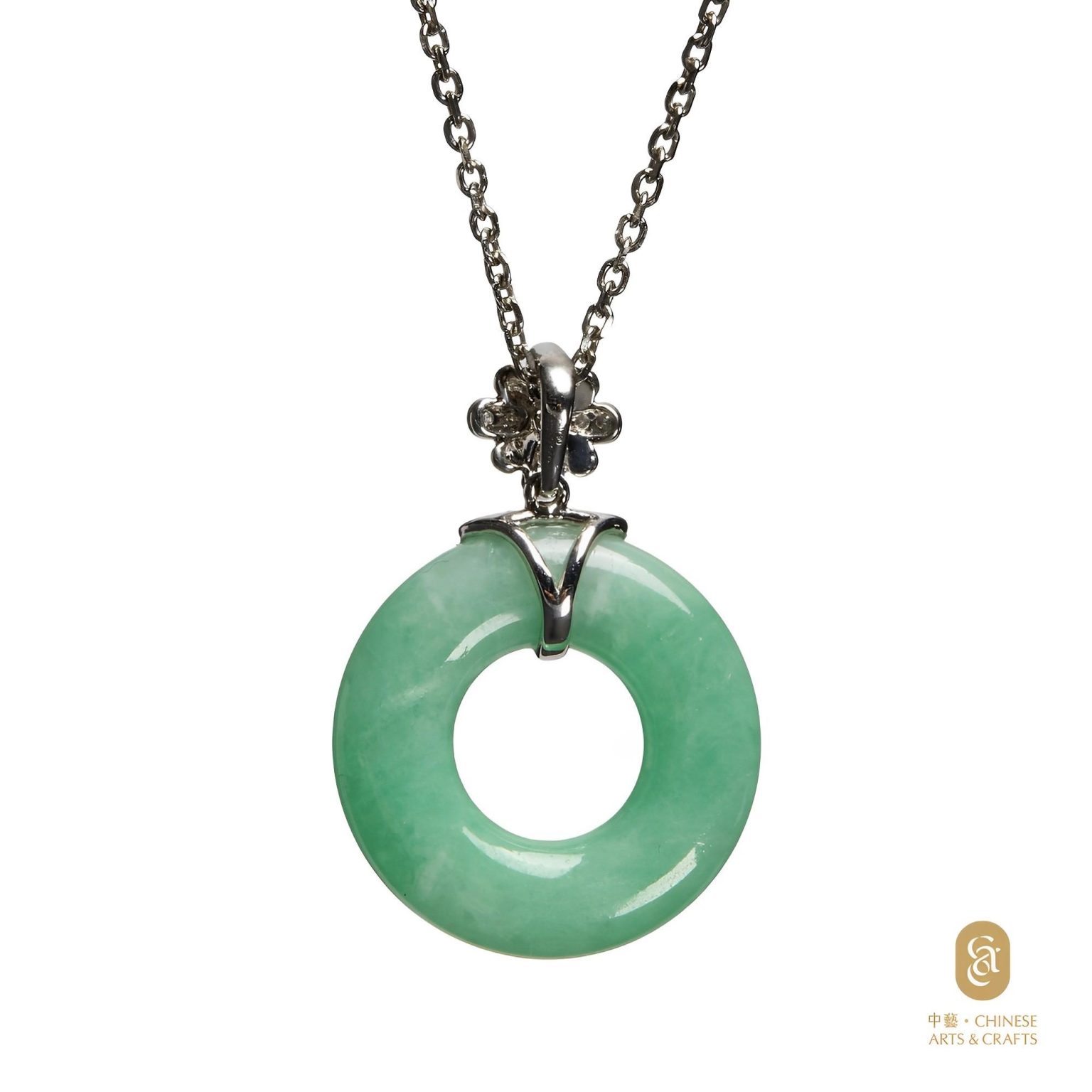 產品材質:天然翡翠(A玉);18K白色黄金鑲鑽石重量(約) :3.97g產品尺寸:長20mm*高28mm*闊4mm;D:0.088CT