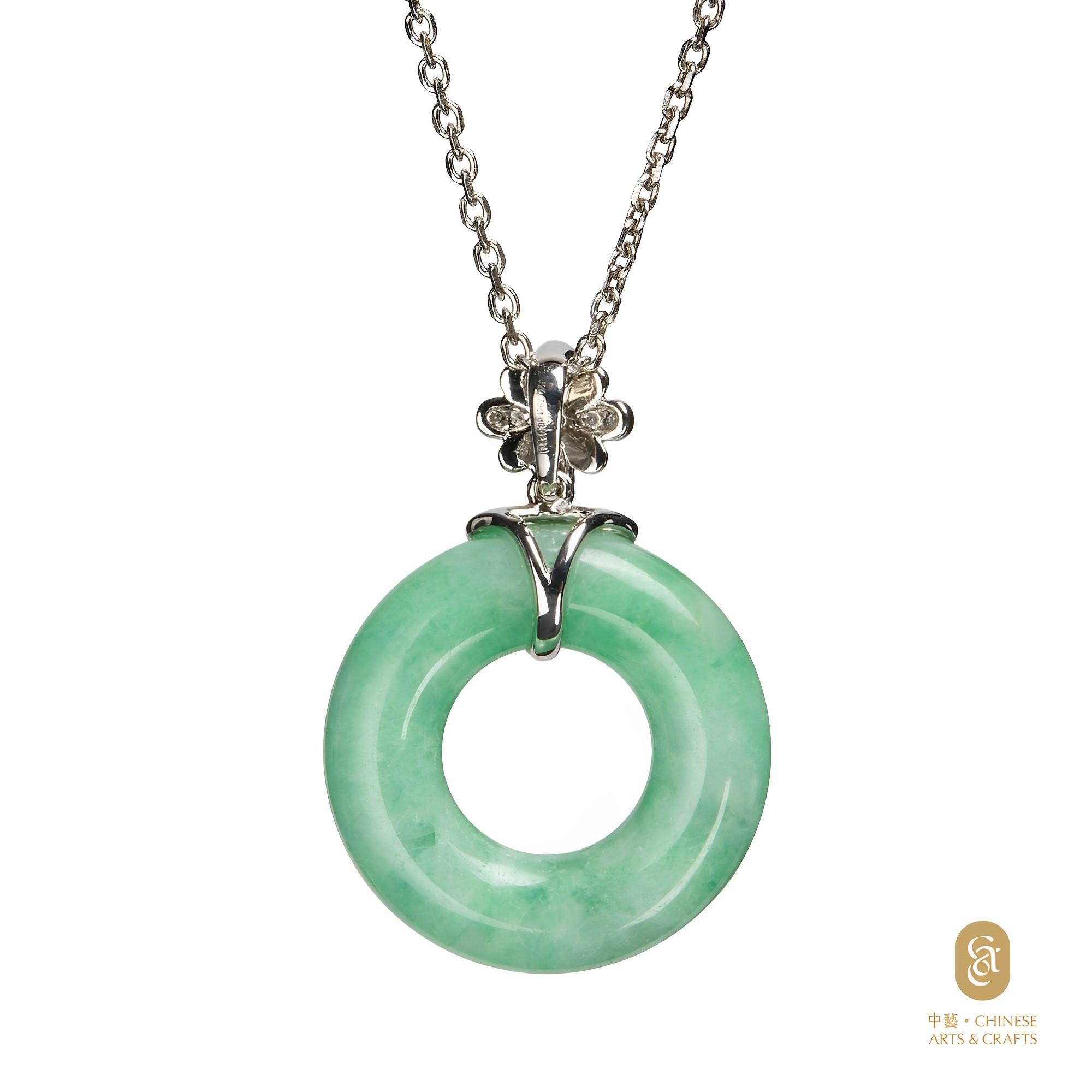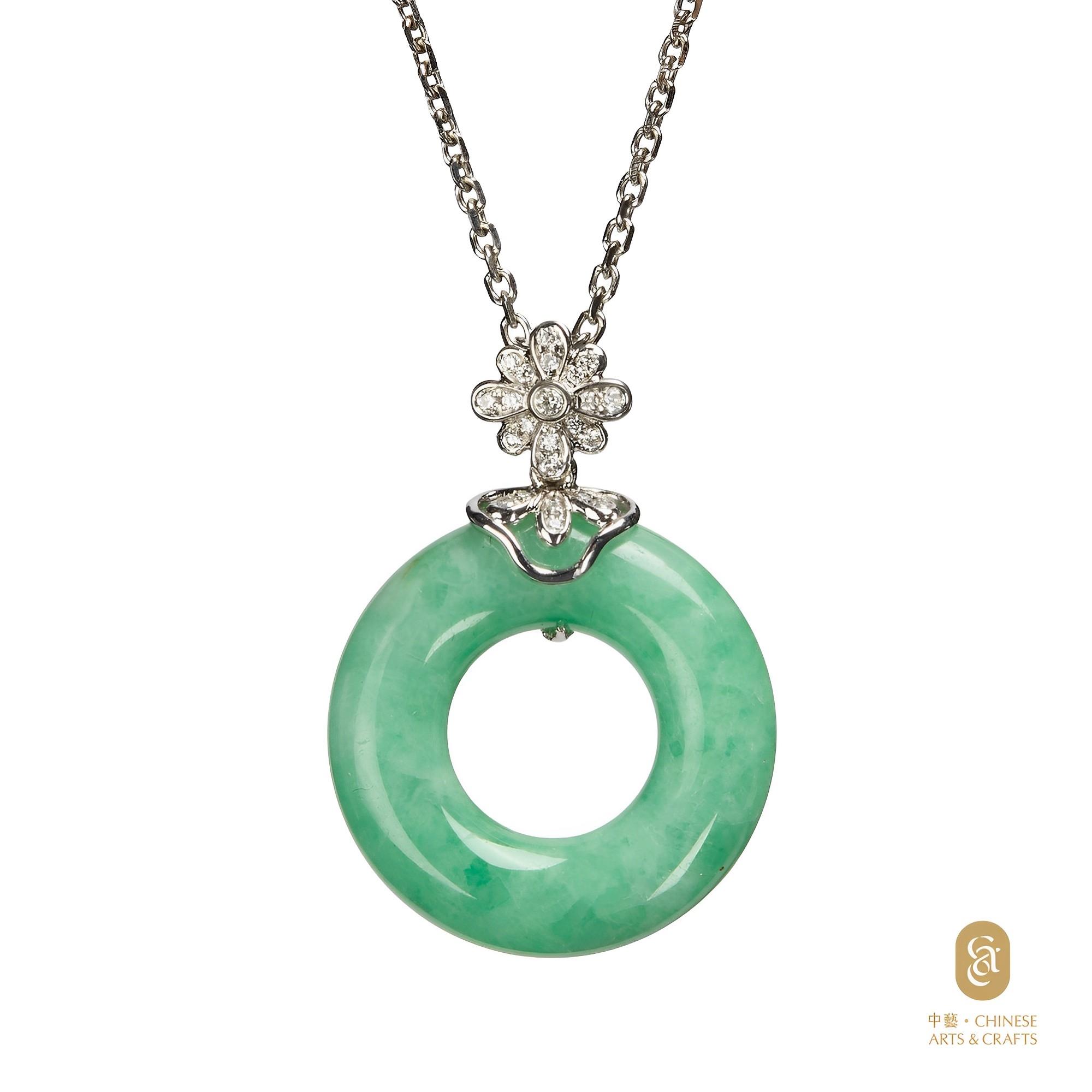 產品材質:天然翡翠(A玉);18K白色黄金鑲鑽石
