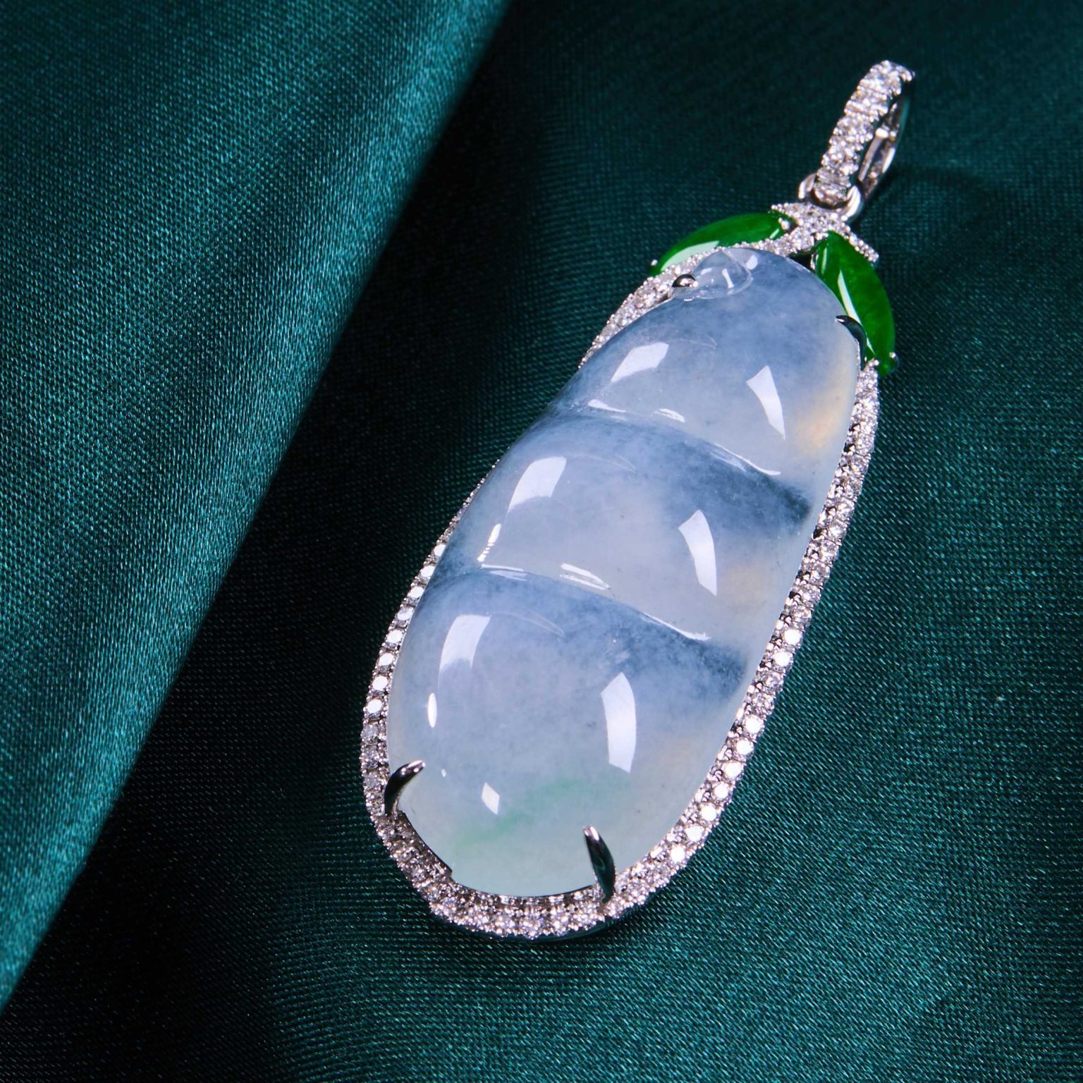 18k白色黃金鑲鑽石天然翡翠(A玉)冰荳吊墜10.68g