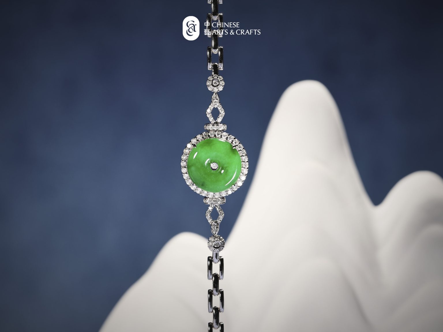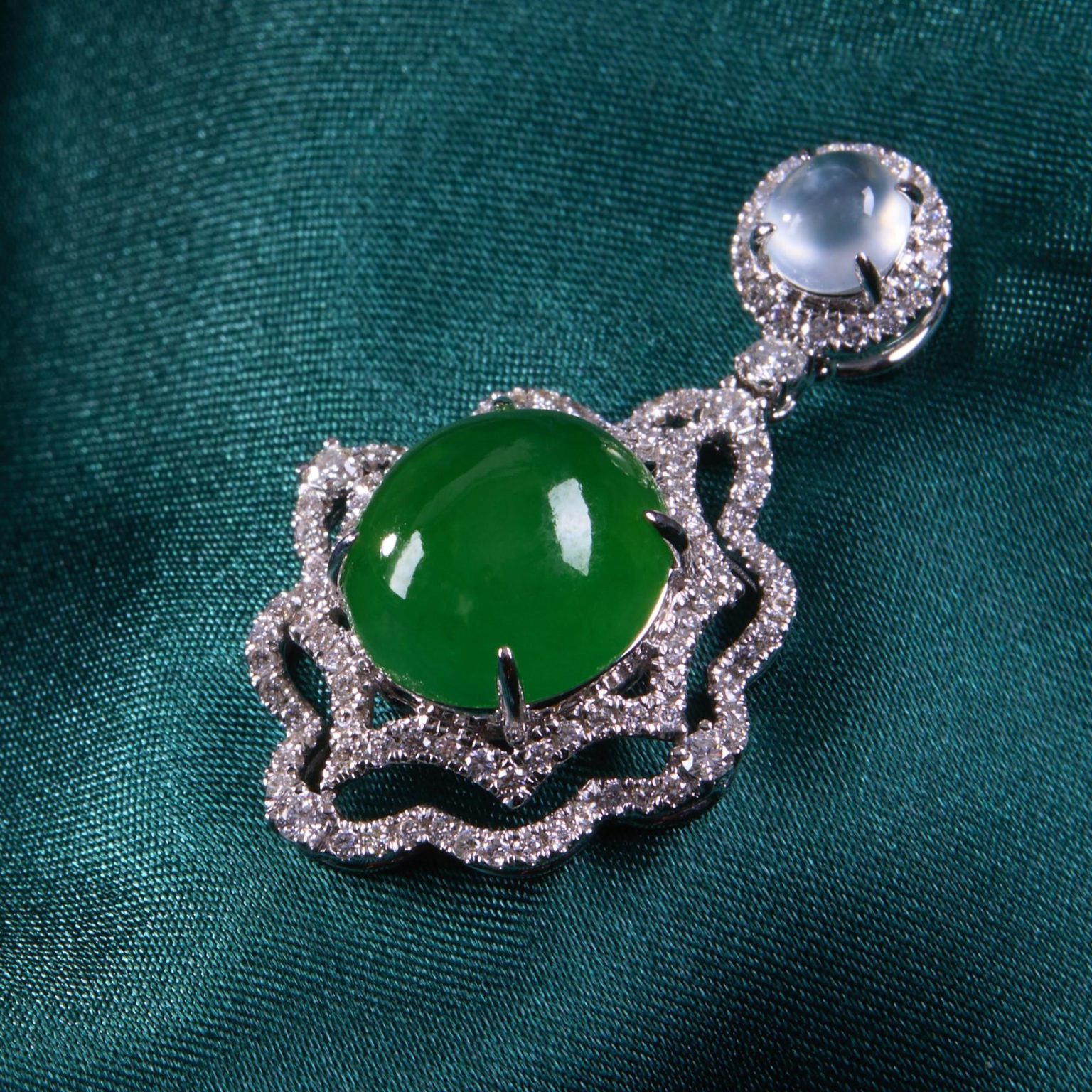 18K白色黃金鑲鑽石天然翡翠(A玉)旦面吊墜5.16g