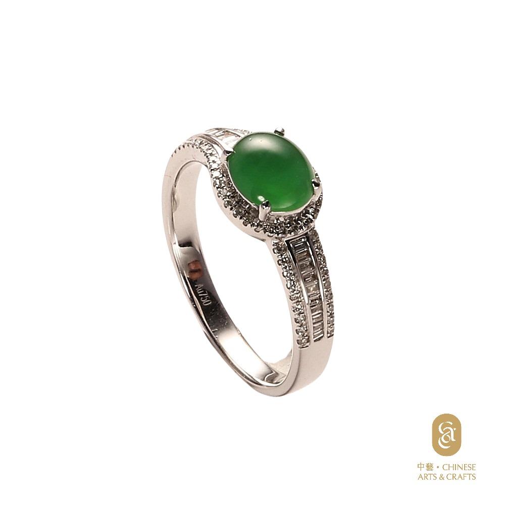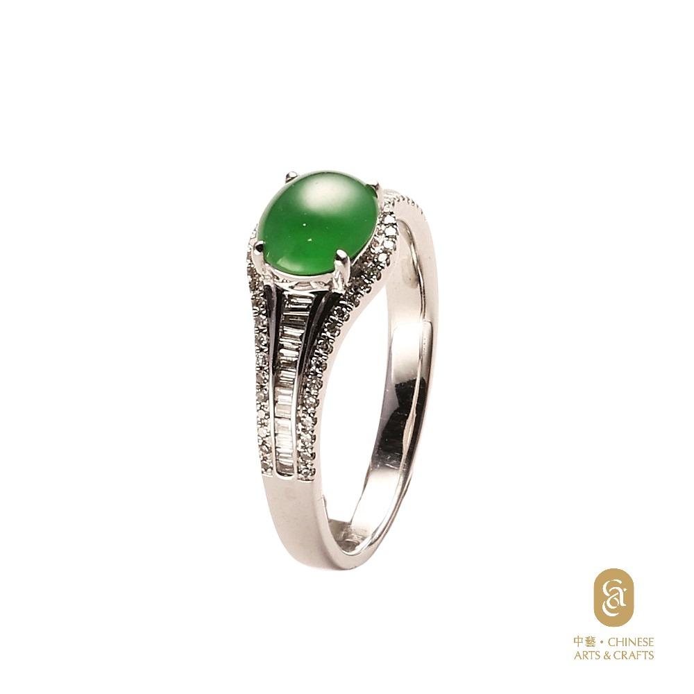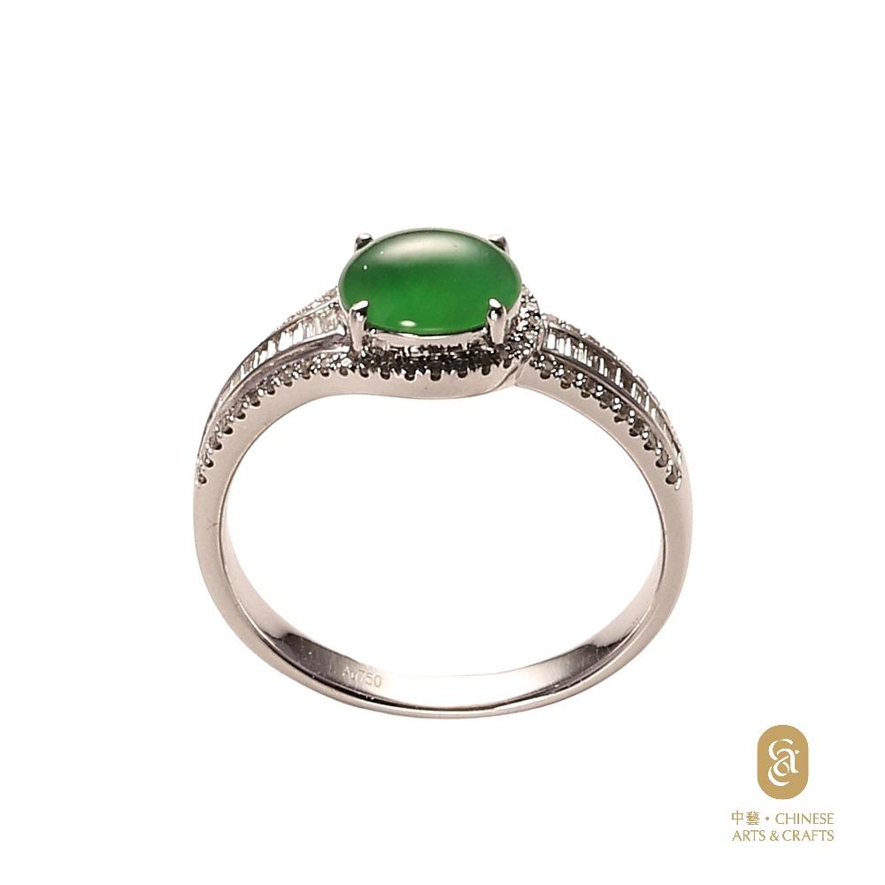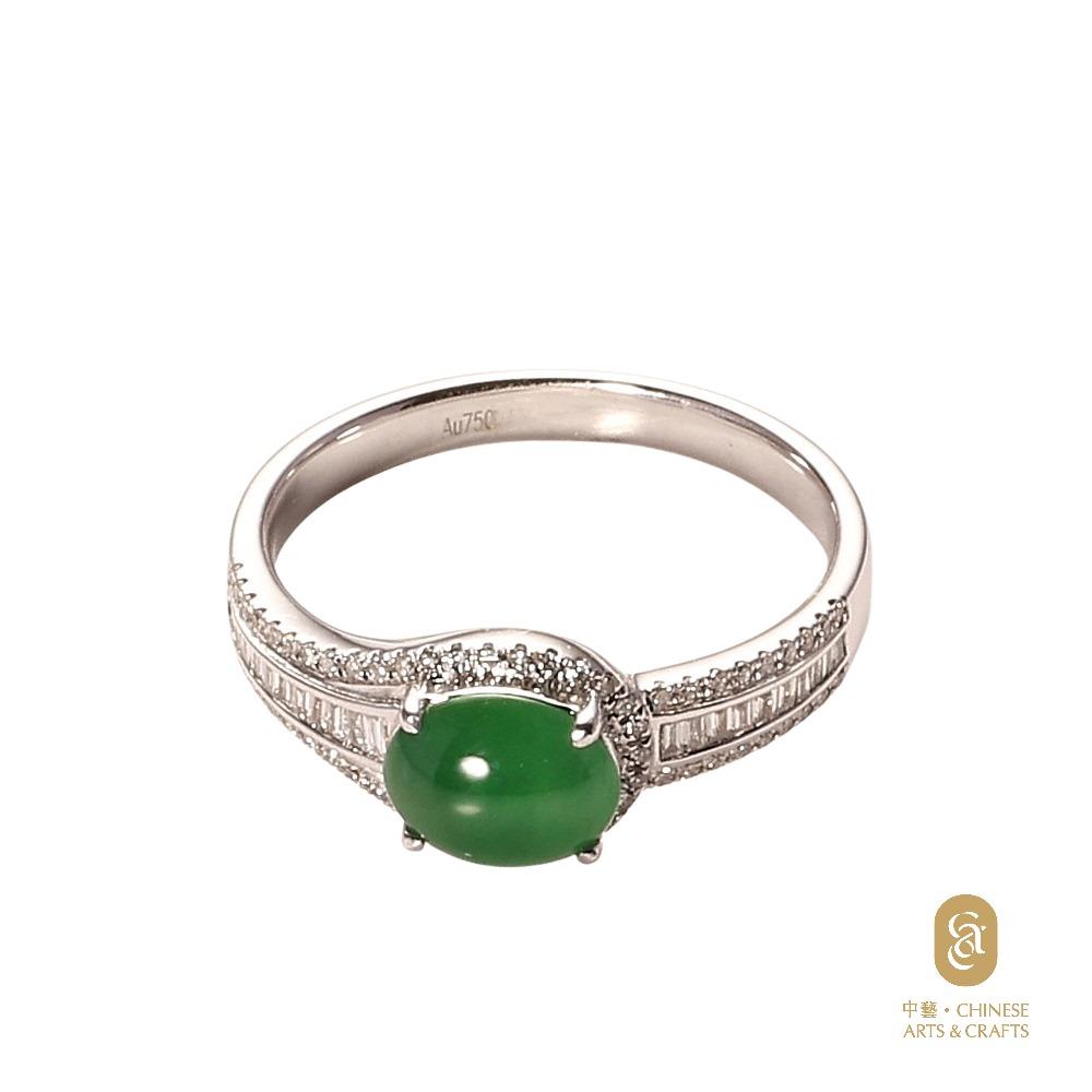 18K白色黃金鑲鑽石天然翡翠(A玉)旦面戒指
