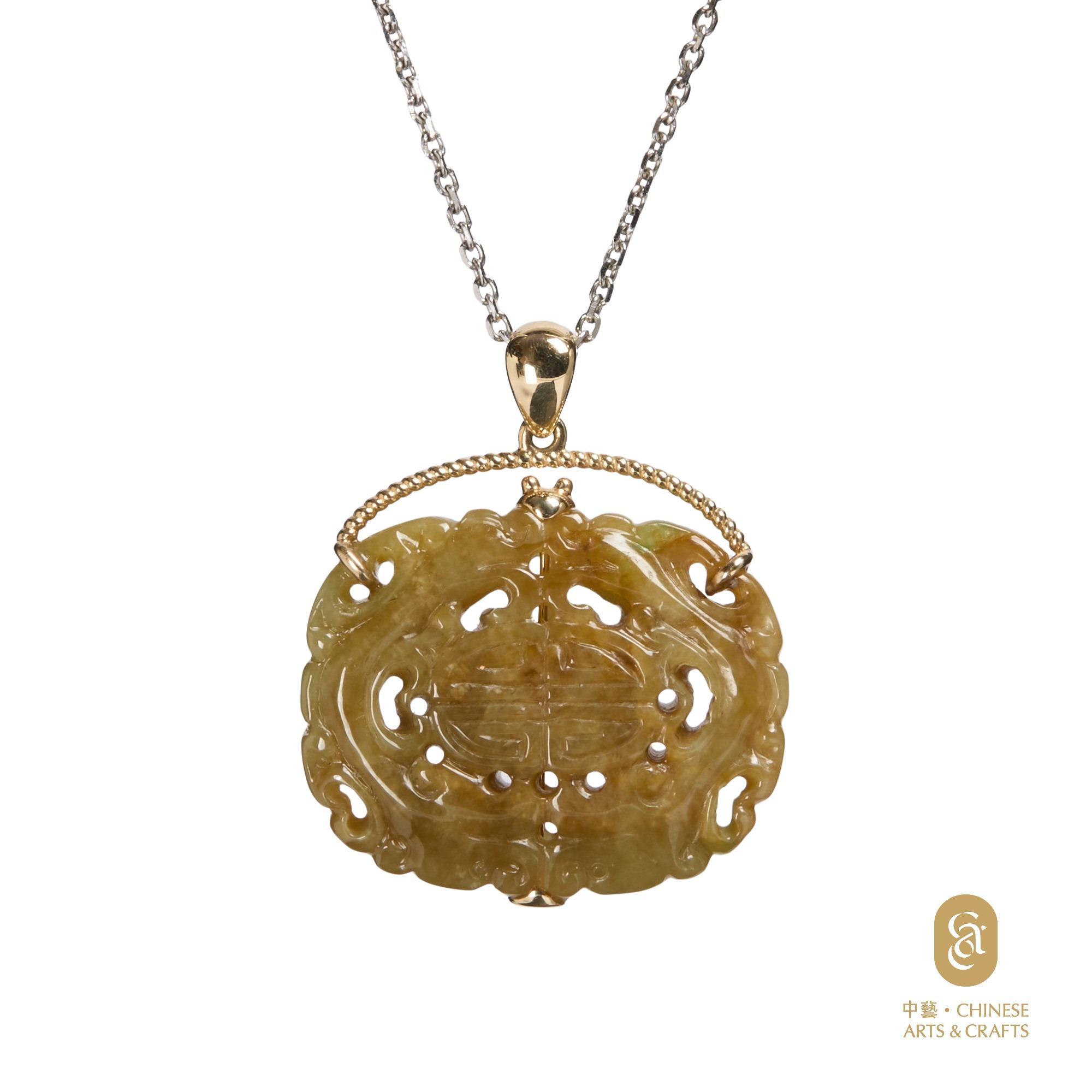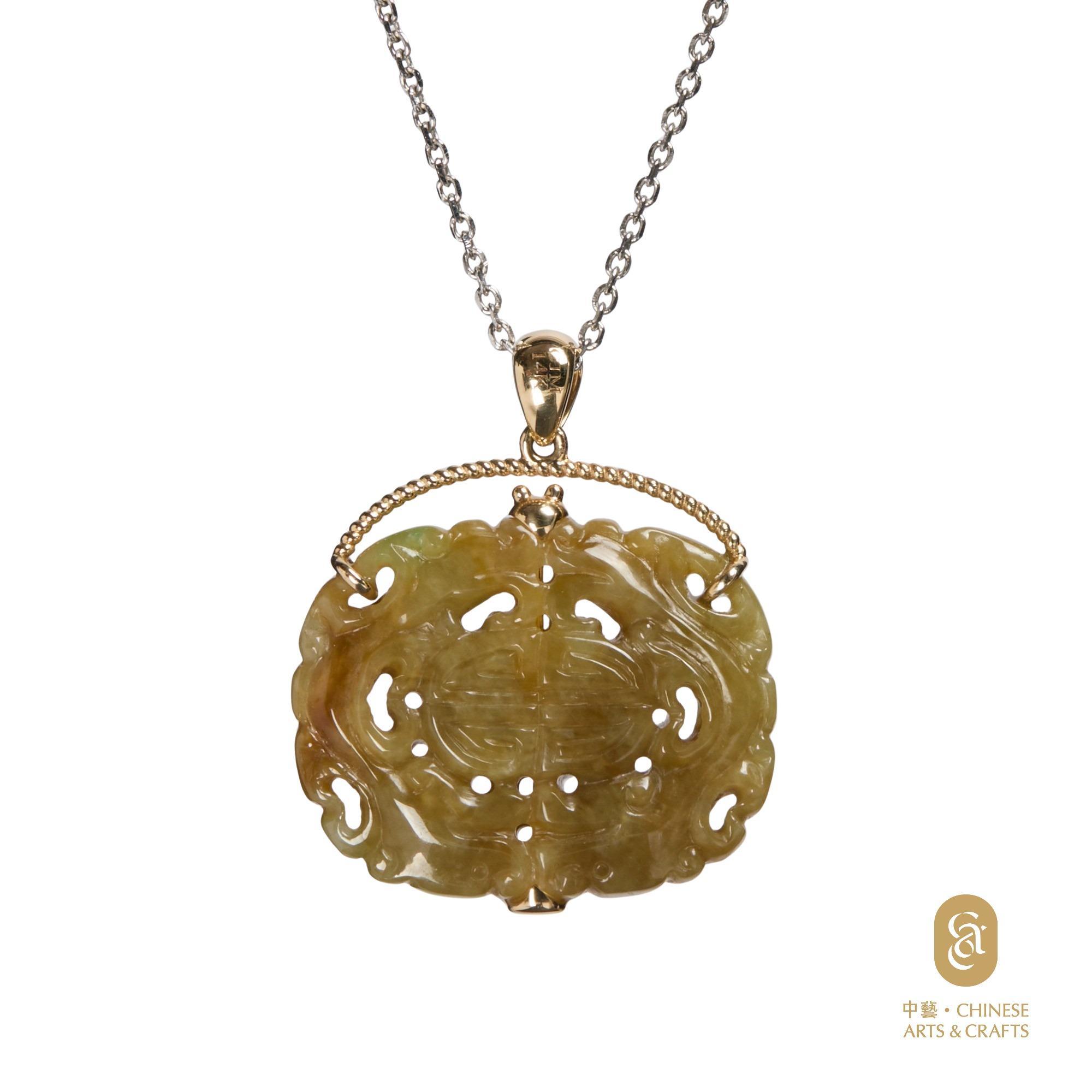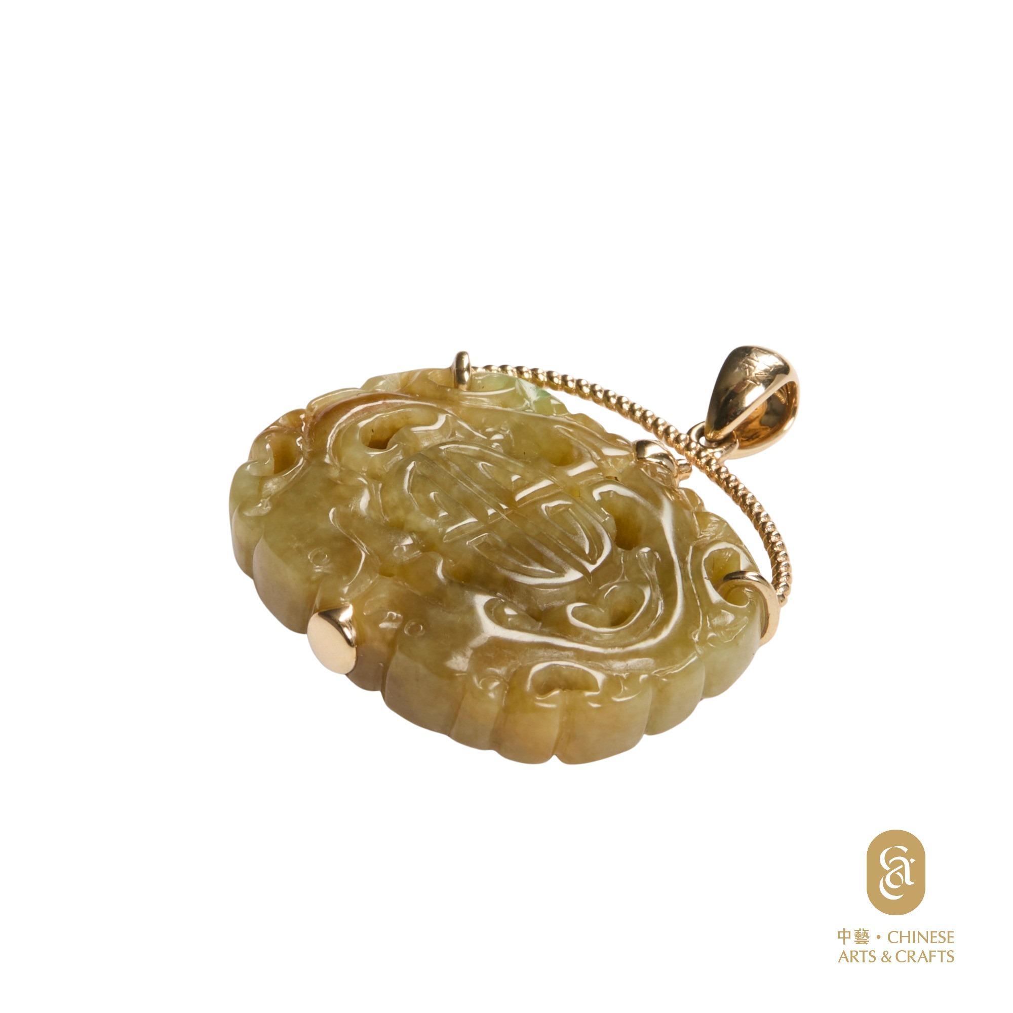 天然翡翠(A玉)栗色雕花福壽吊墜 9.50g