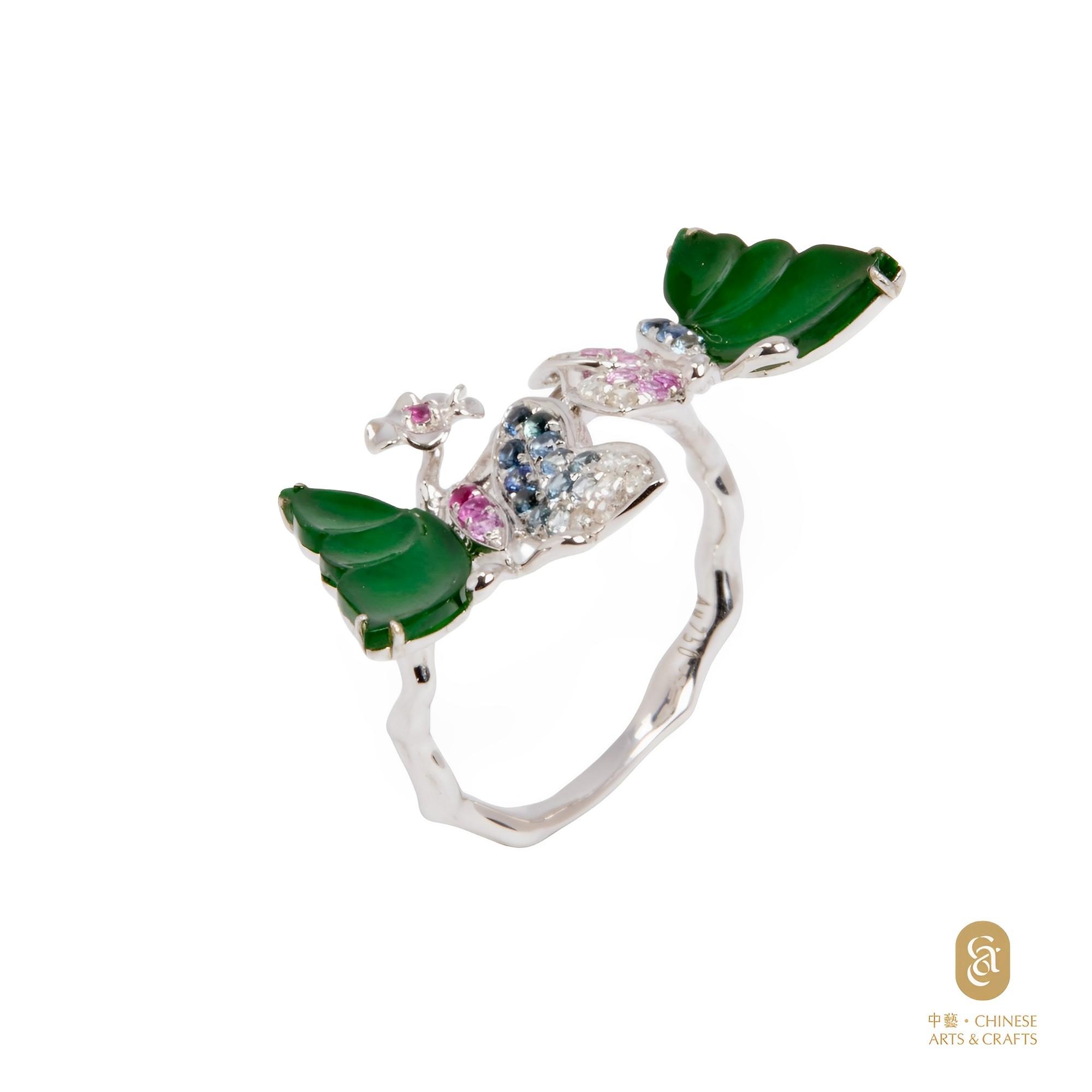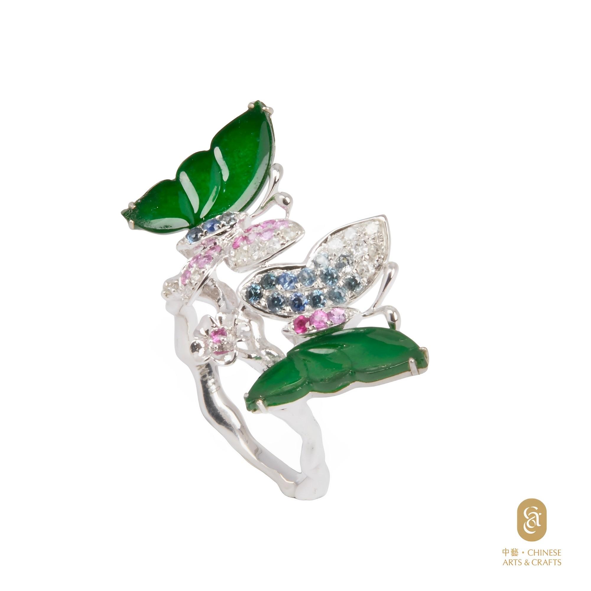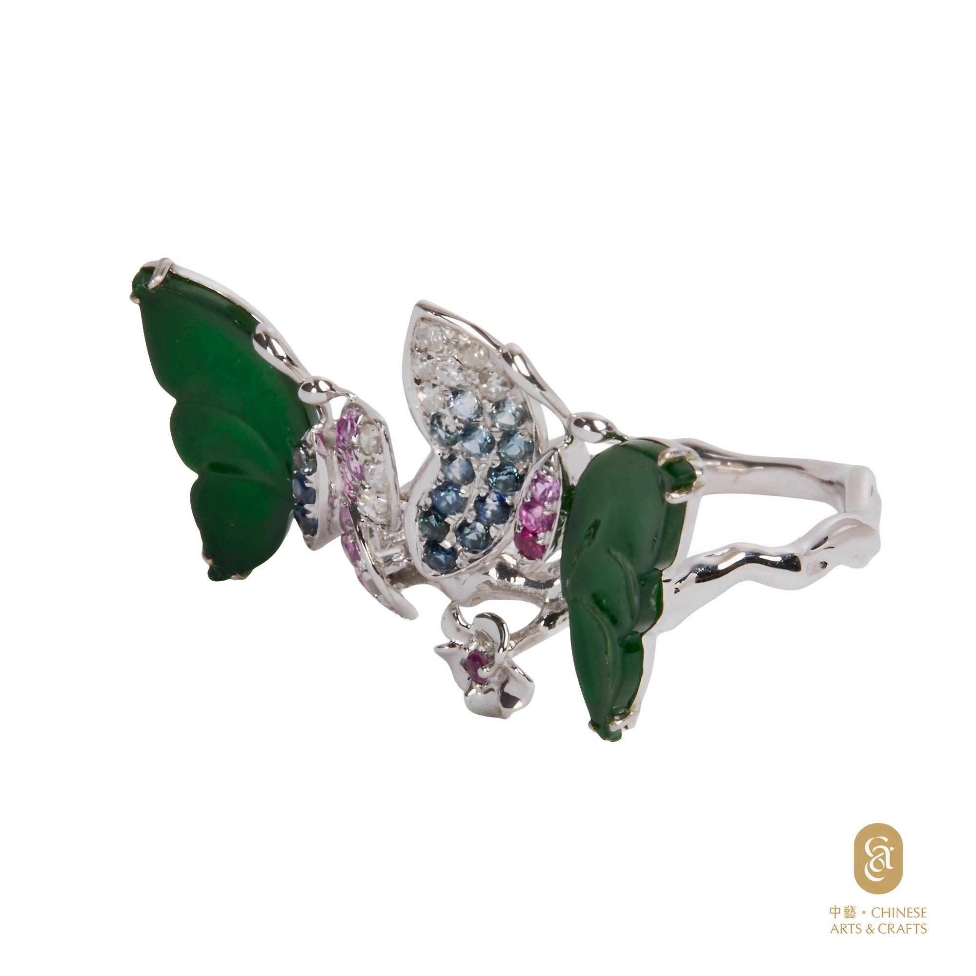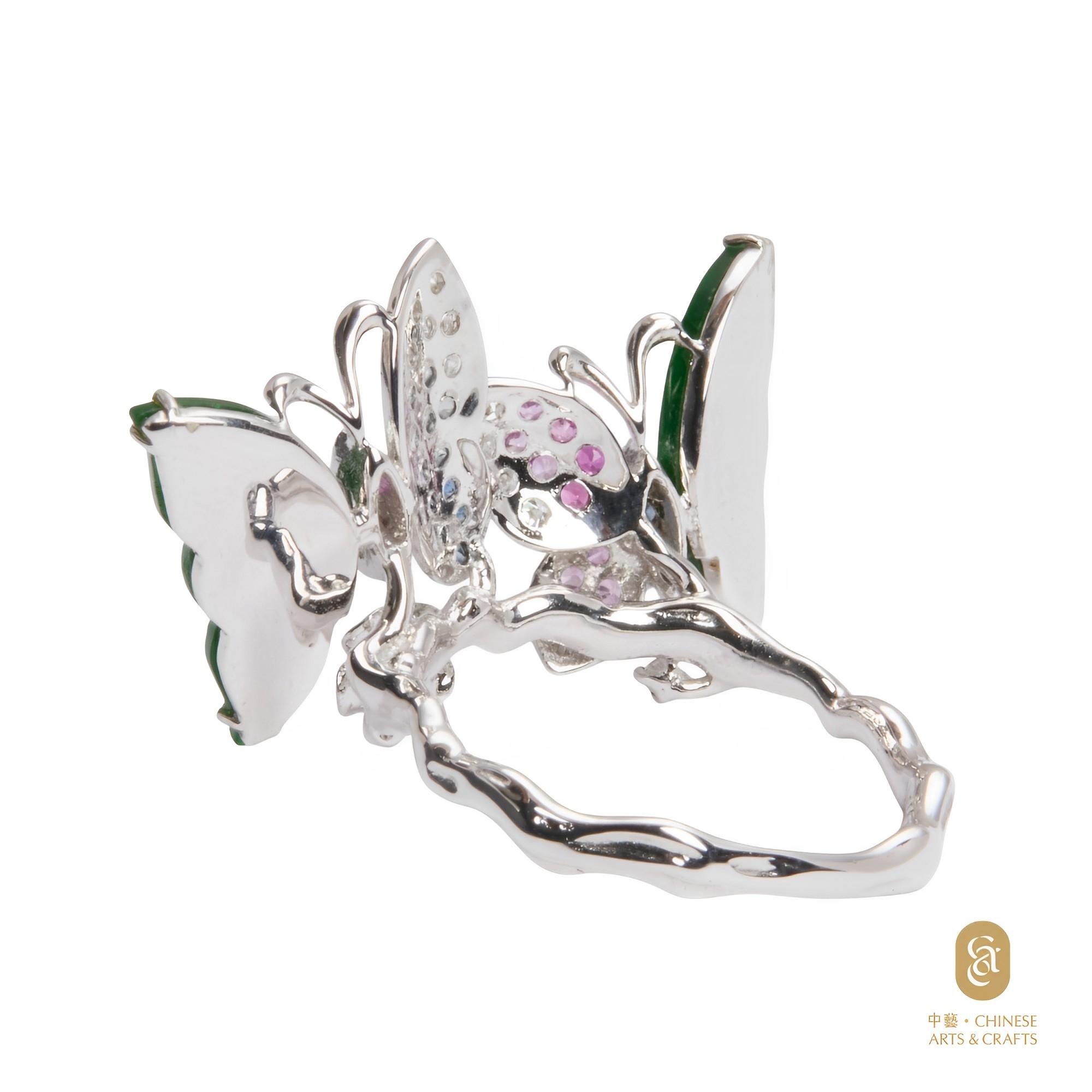 天然翡翠(A玉)比翼蝴蝶戒指 4.24g