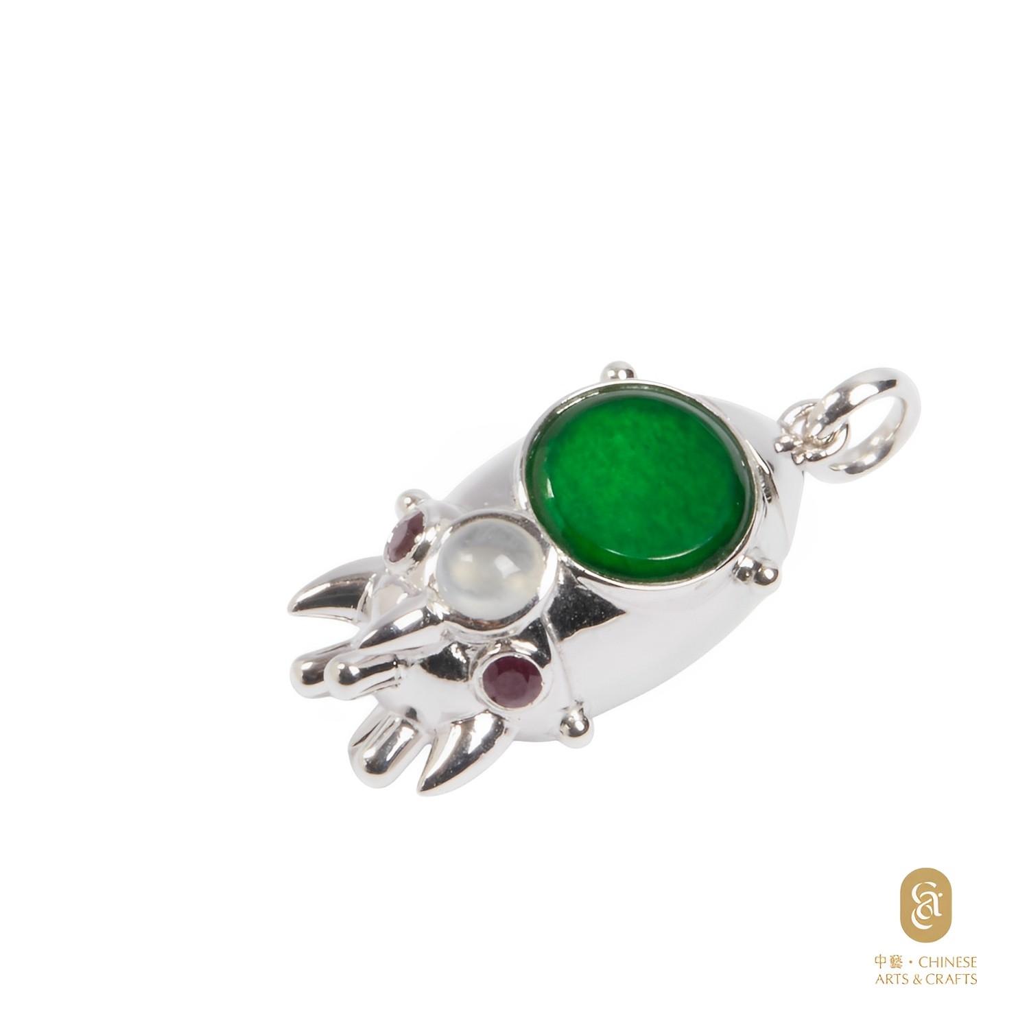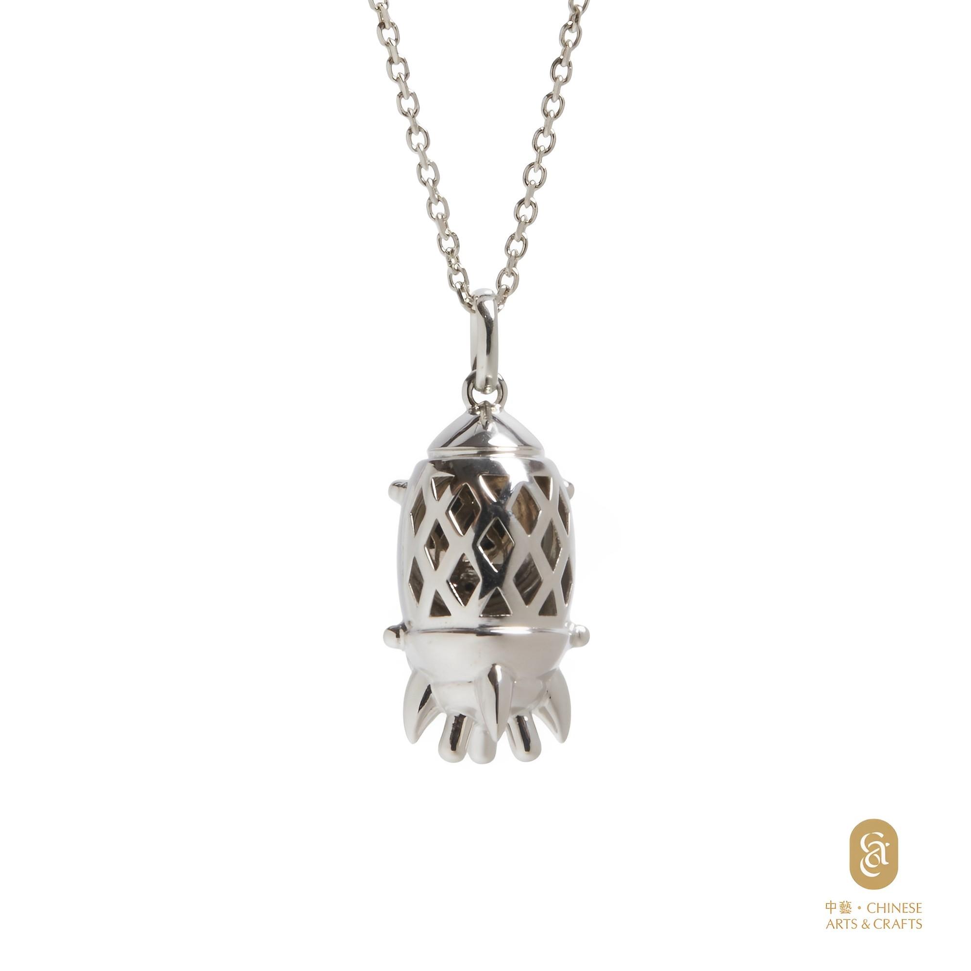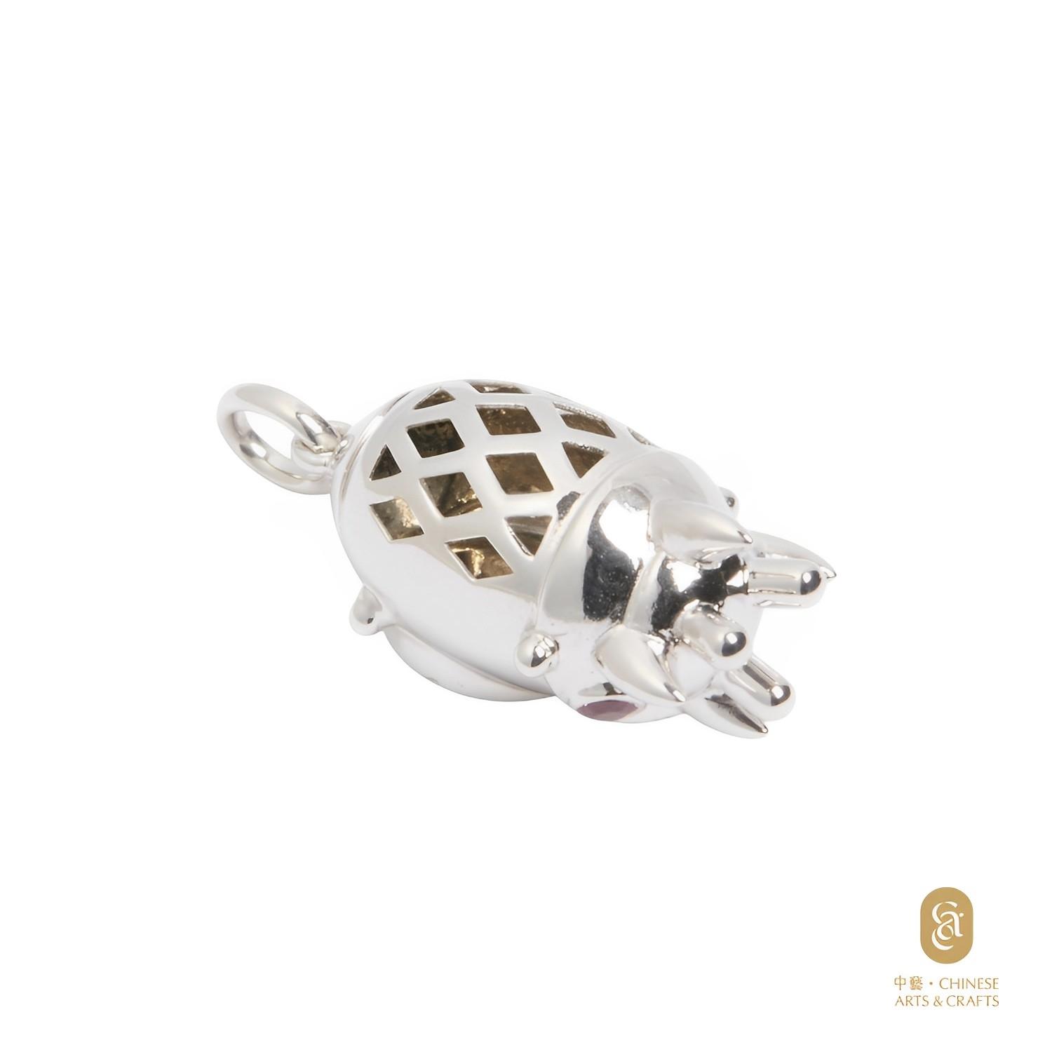 18K紅色黃金和田玉白玉鼓形吊墜 (不含鏈)
