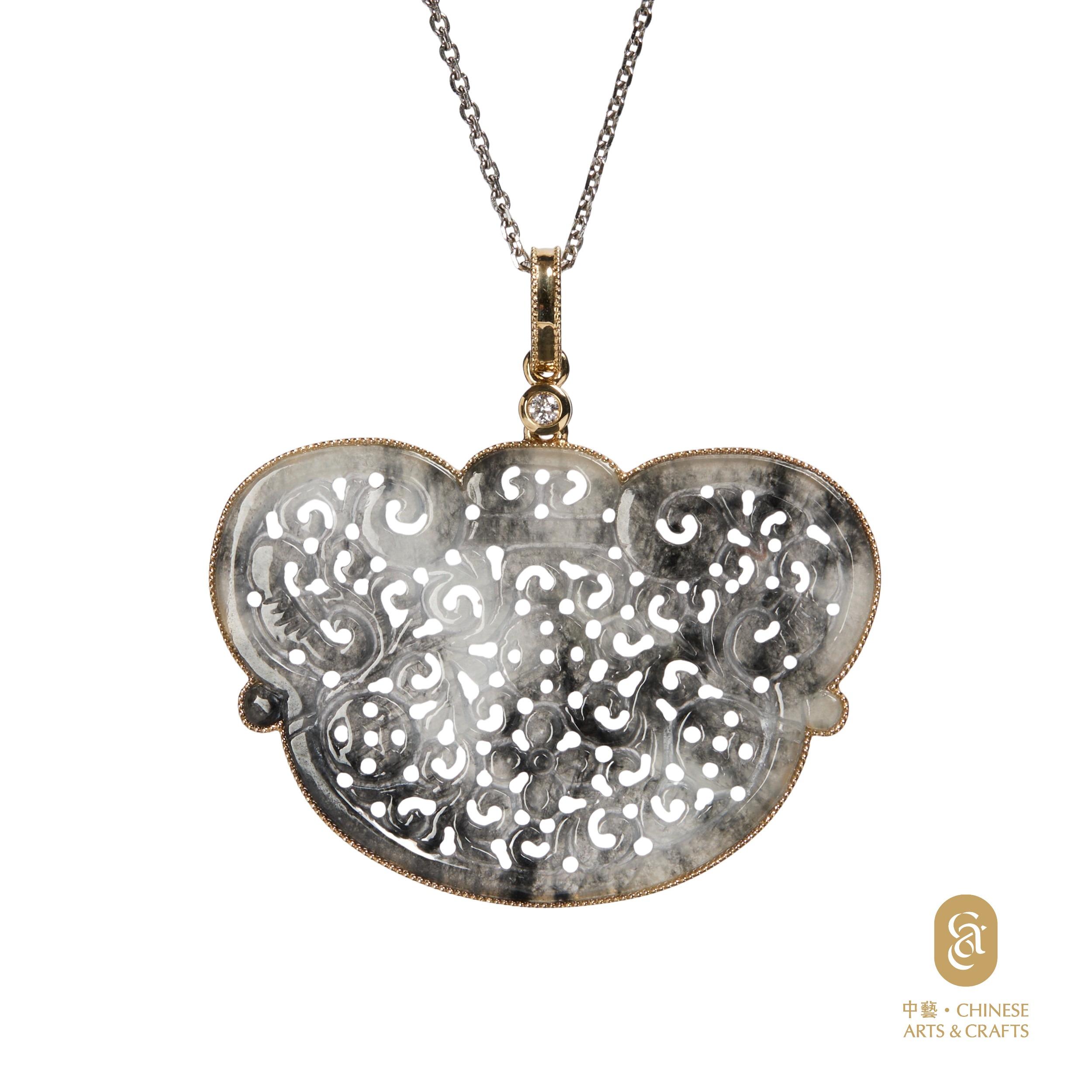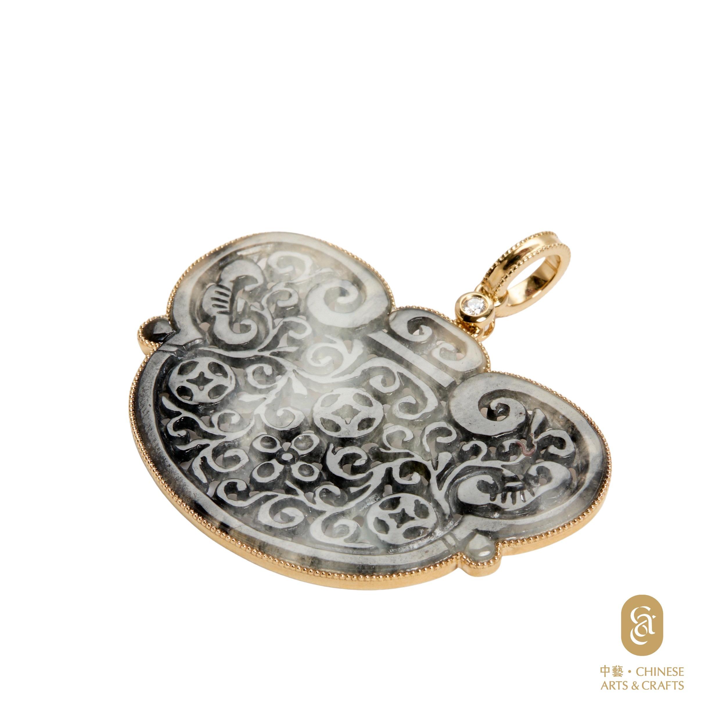 產品材質:天然翡翠(A玉),14k重量:8.01g尺寸:長48mm*高50mm*厚2mm; D:0.06ct **