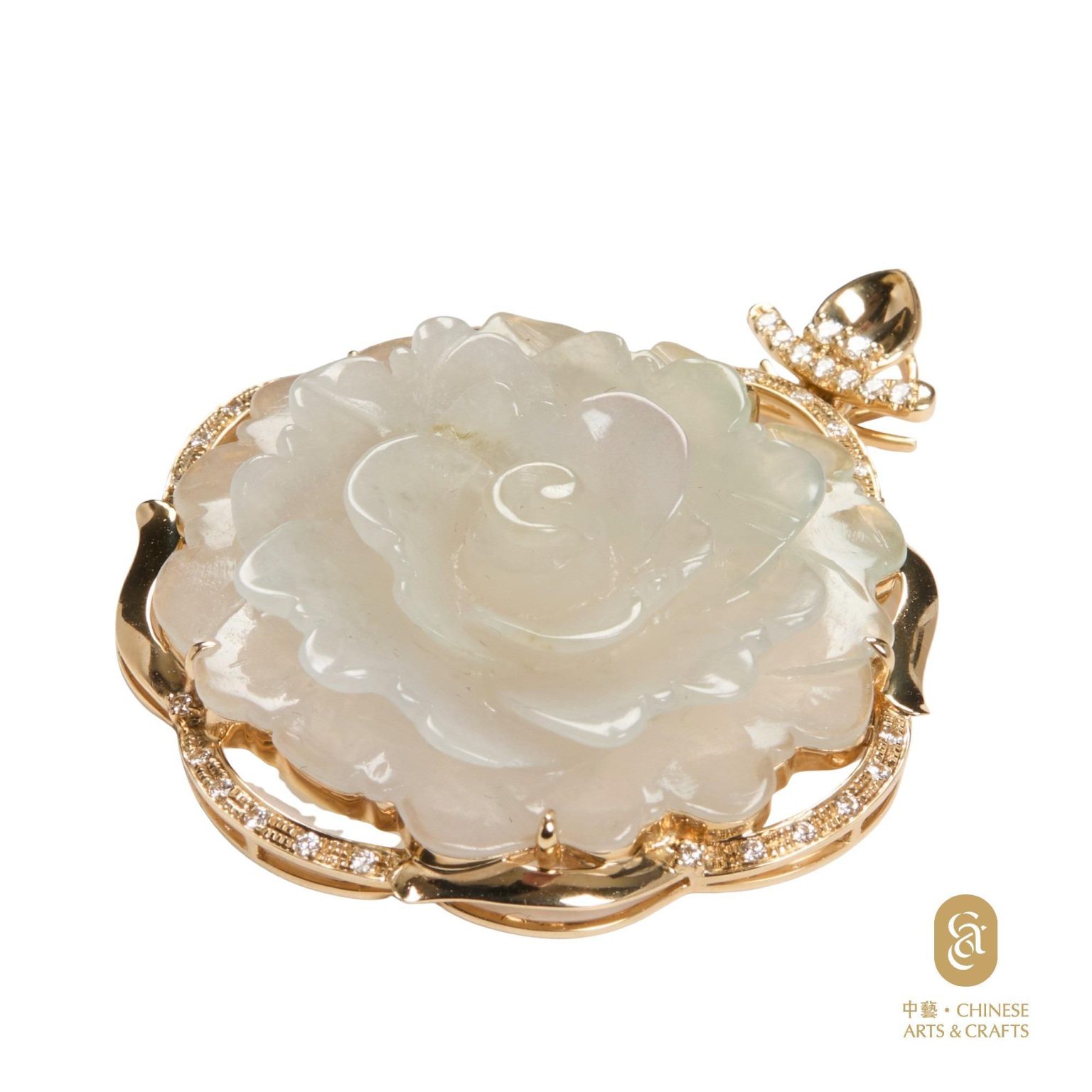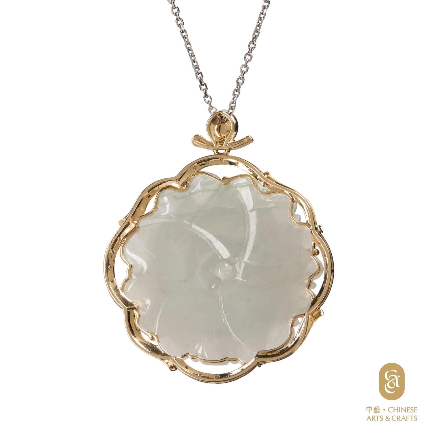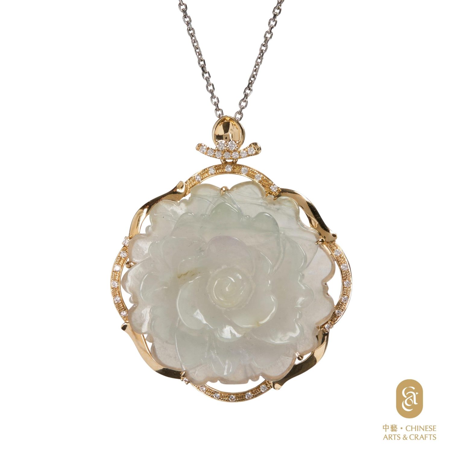 產品材質:天然翡翠(A玉),14k重量:14.53g尺寸:33D:0.35ct; 長42mm*高46mm*厚10mm **