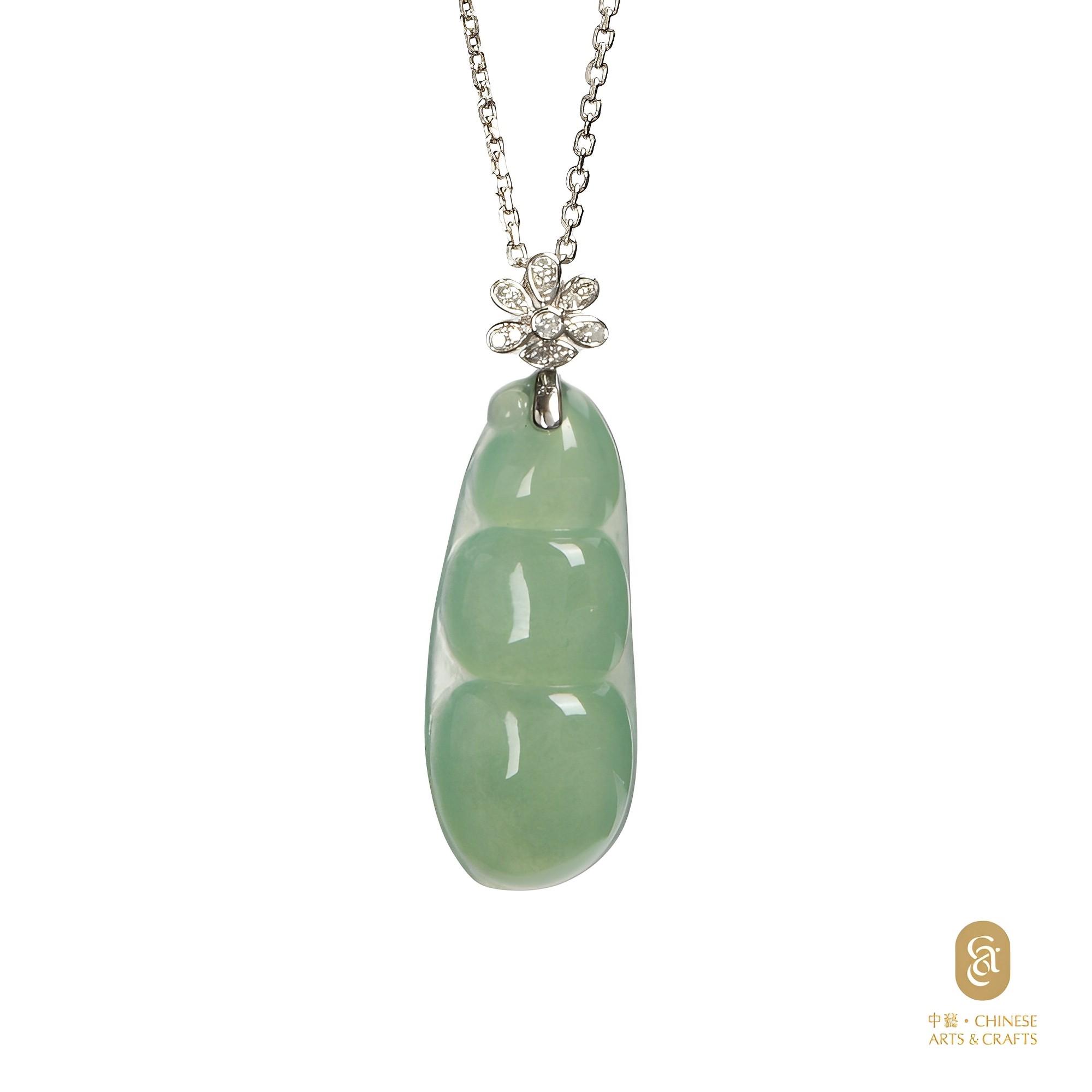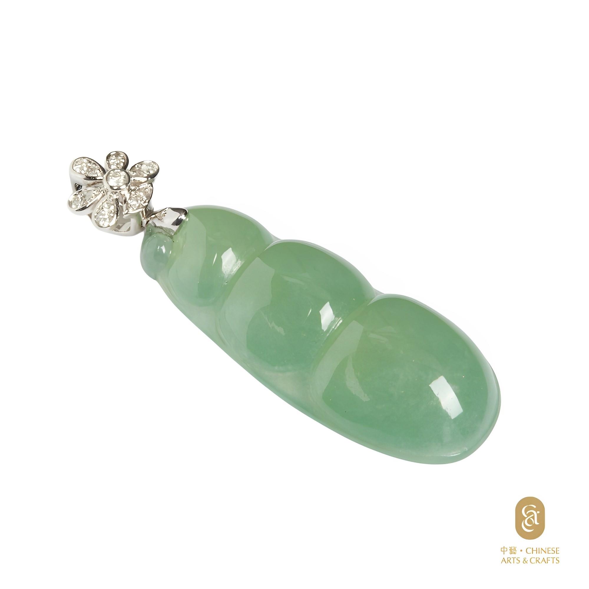 產品材質:天然翡翠(A玉), 18K白色黃金鑲鑽石
