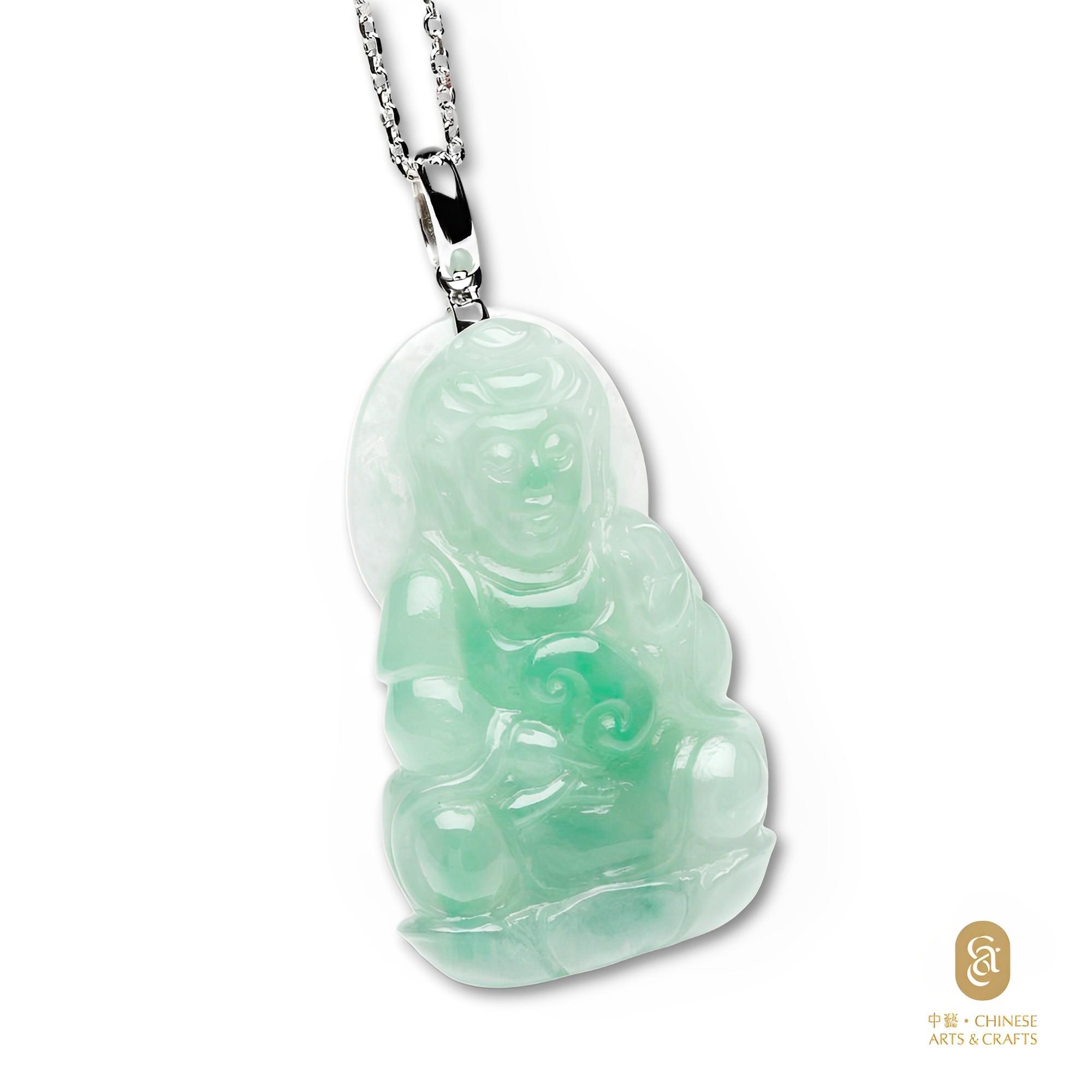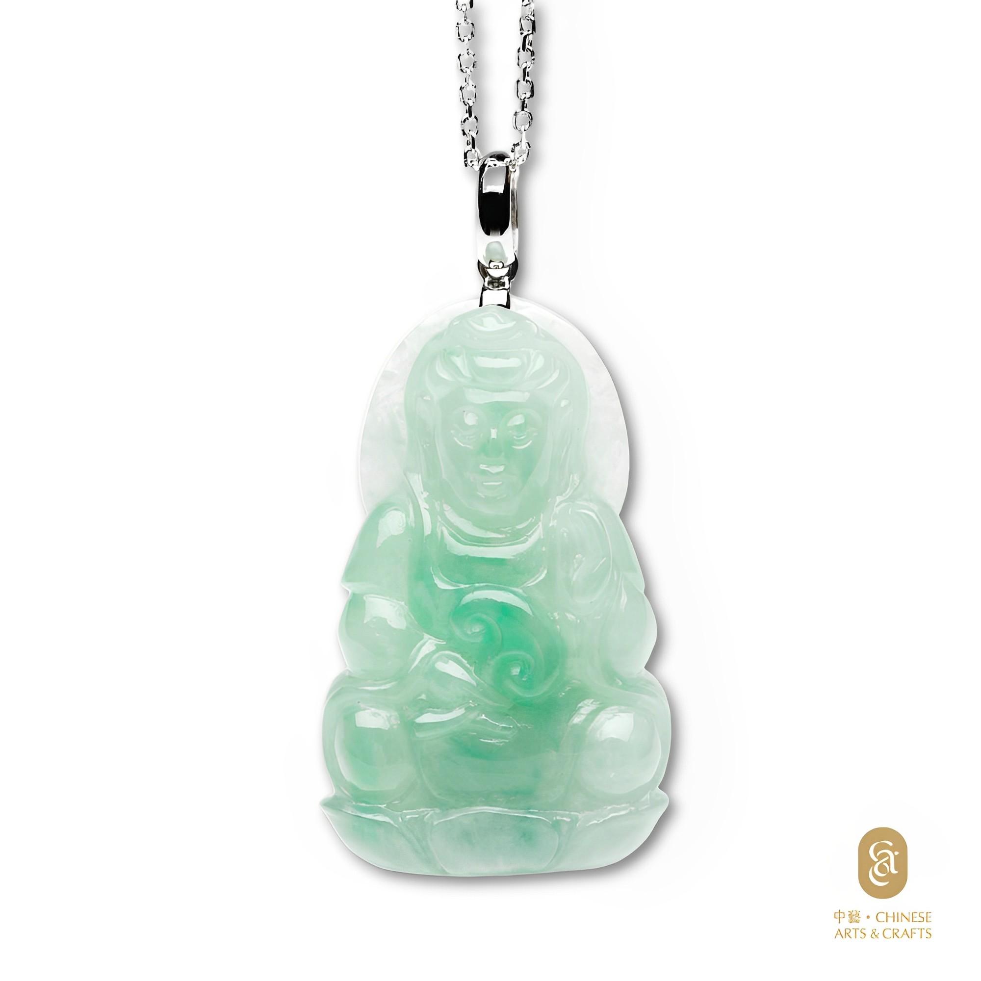 款式: 觀音菩薩以慈悲為懷,是庇護世人的救世主。翡翠觀音吊墜種質細膩,顏色純正,能保佑佩戴之人平安如意,萬事順遂。
