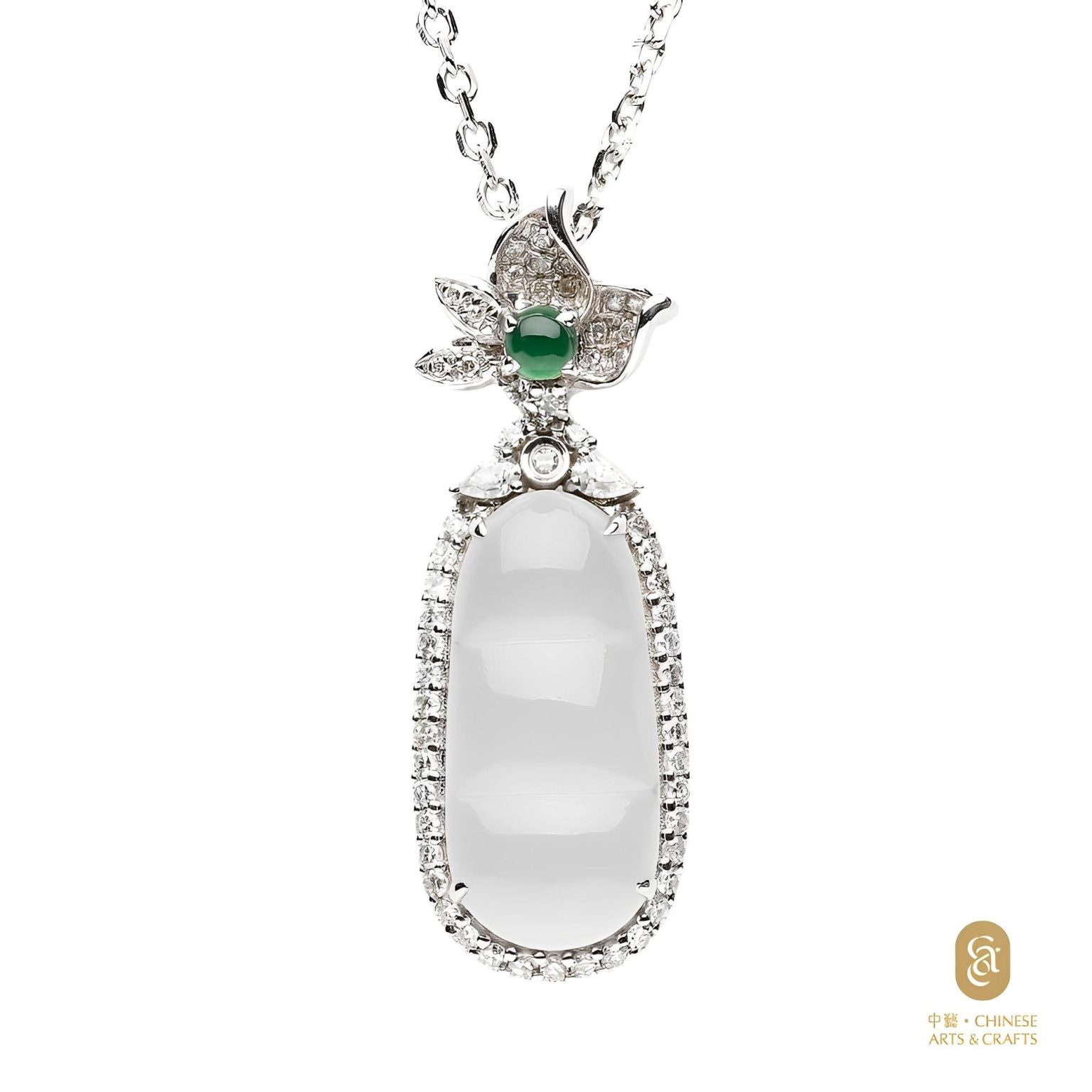18K白色黃金鑲藍寶石鑽石吊墜(附GRS証書)
