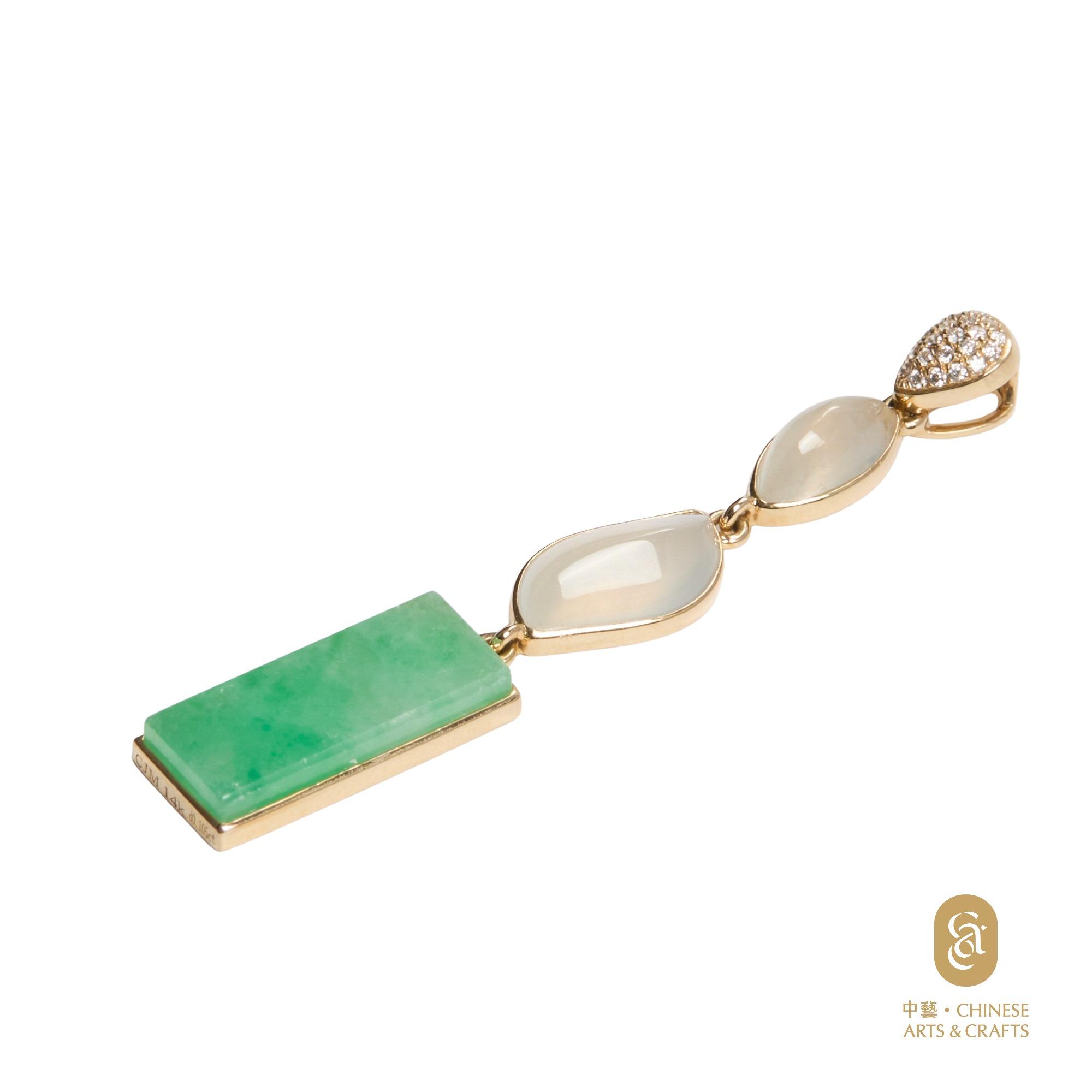 產品材質:天然翡翠(A玉),14k重量:3.42g尺寸:21D:0.105ct; 長7mm*高50mm*厚4mm **