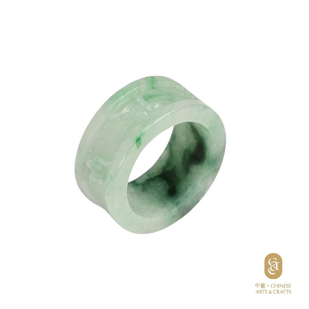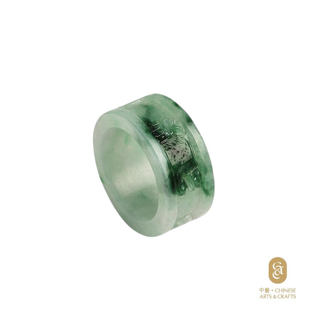/ 天然翡翠(A玉)-六字真言扳指#26 11.5g