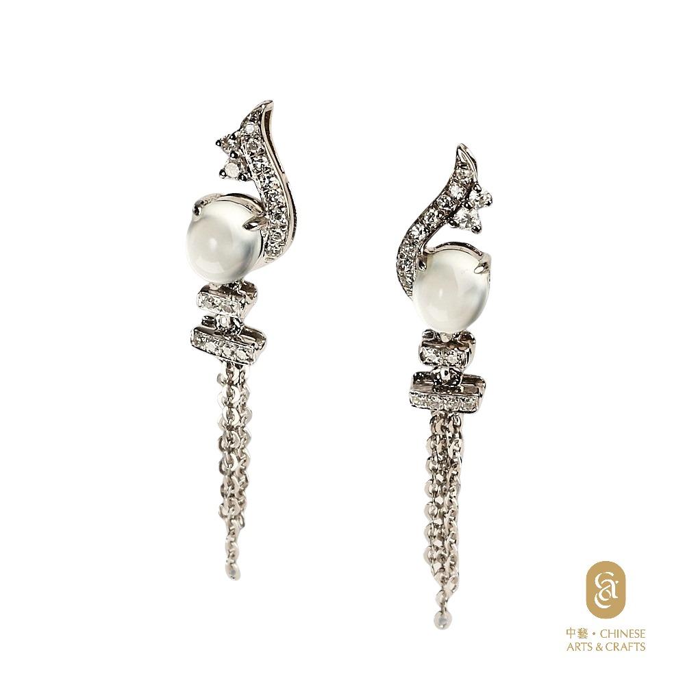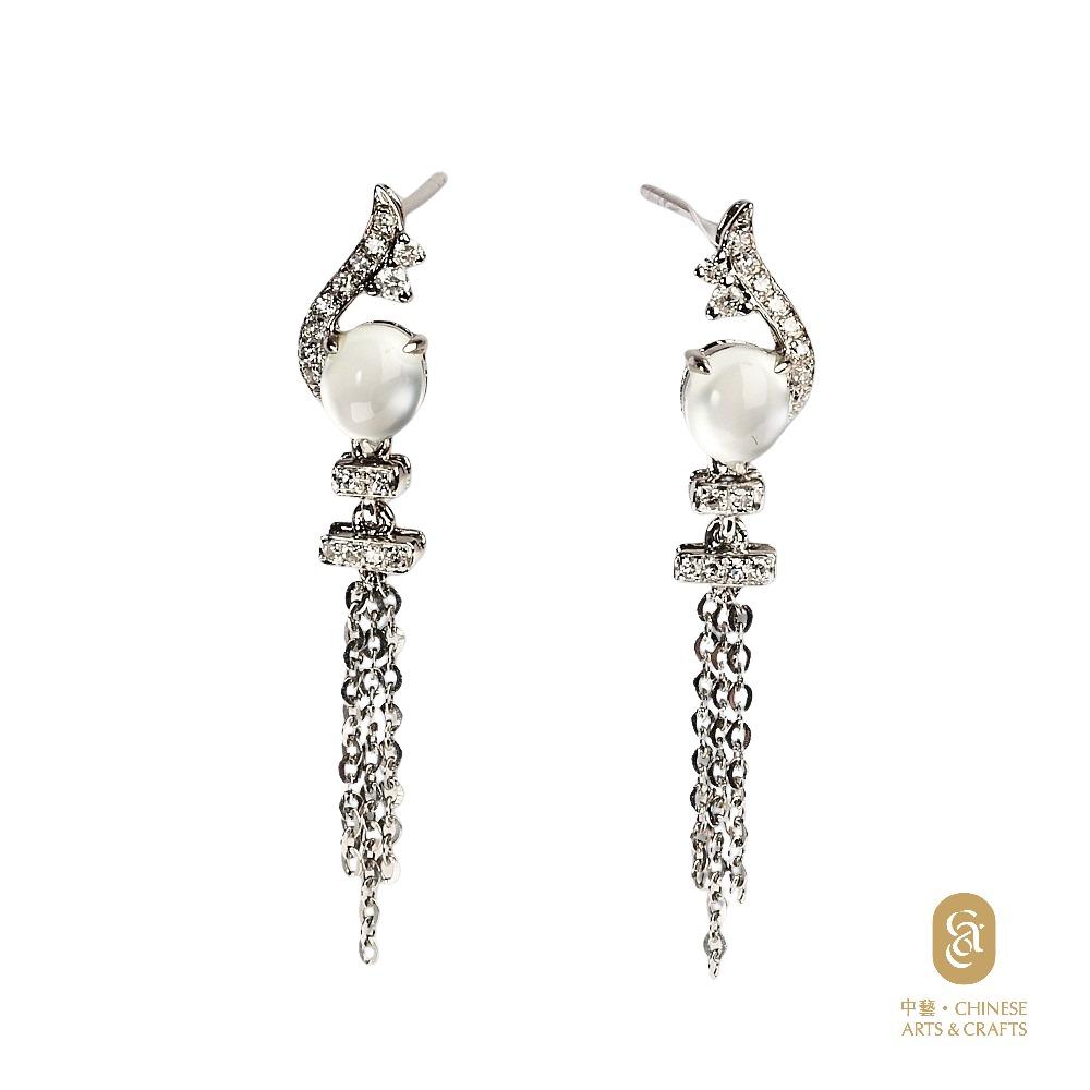 18K黃色黃金和田玉白玉玉蘭吊耳環