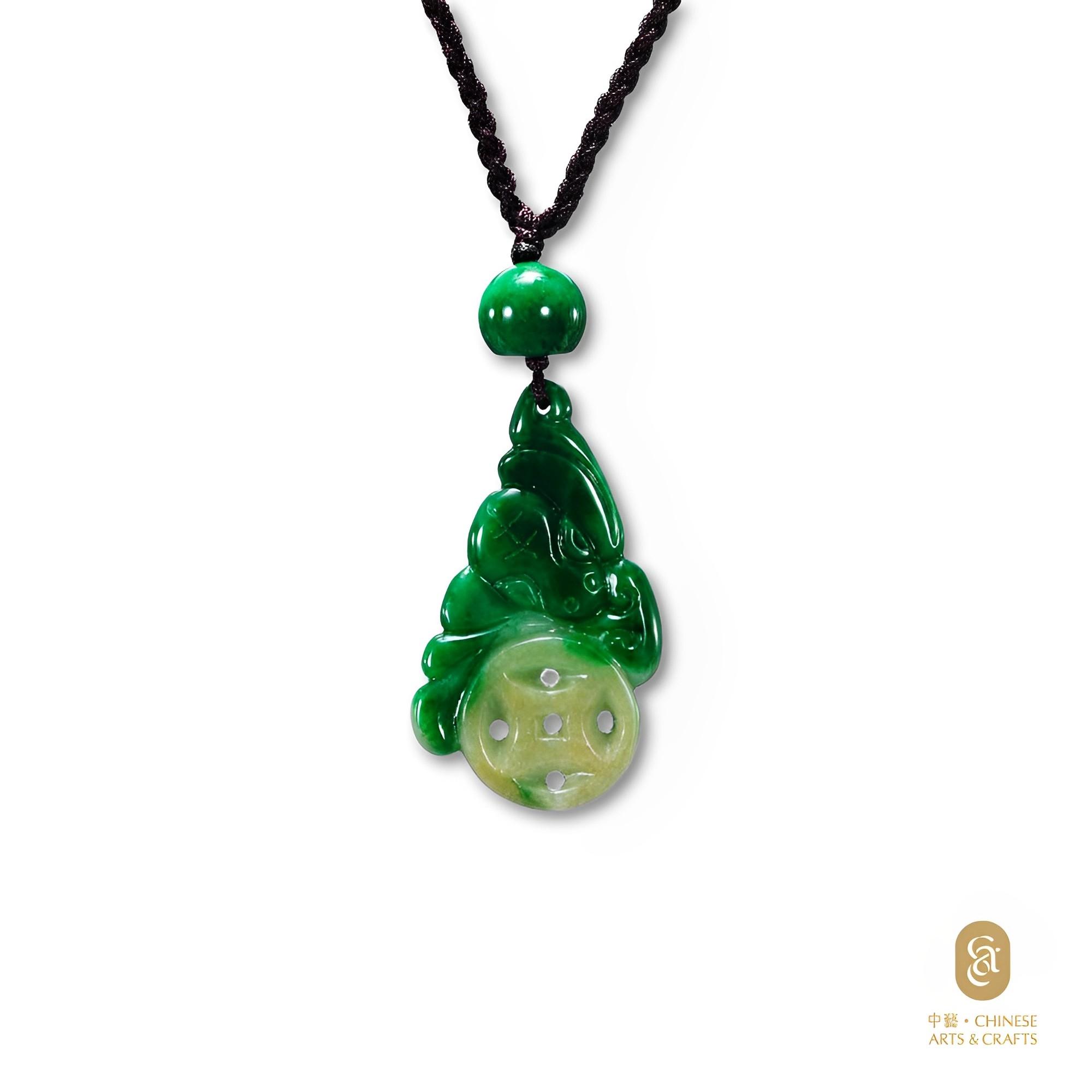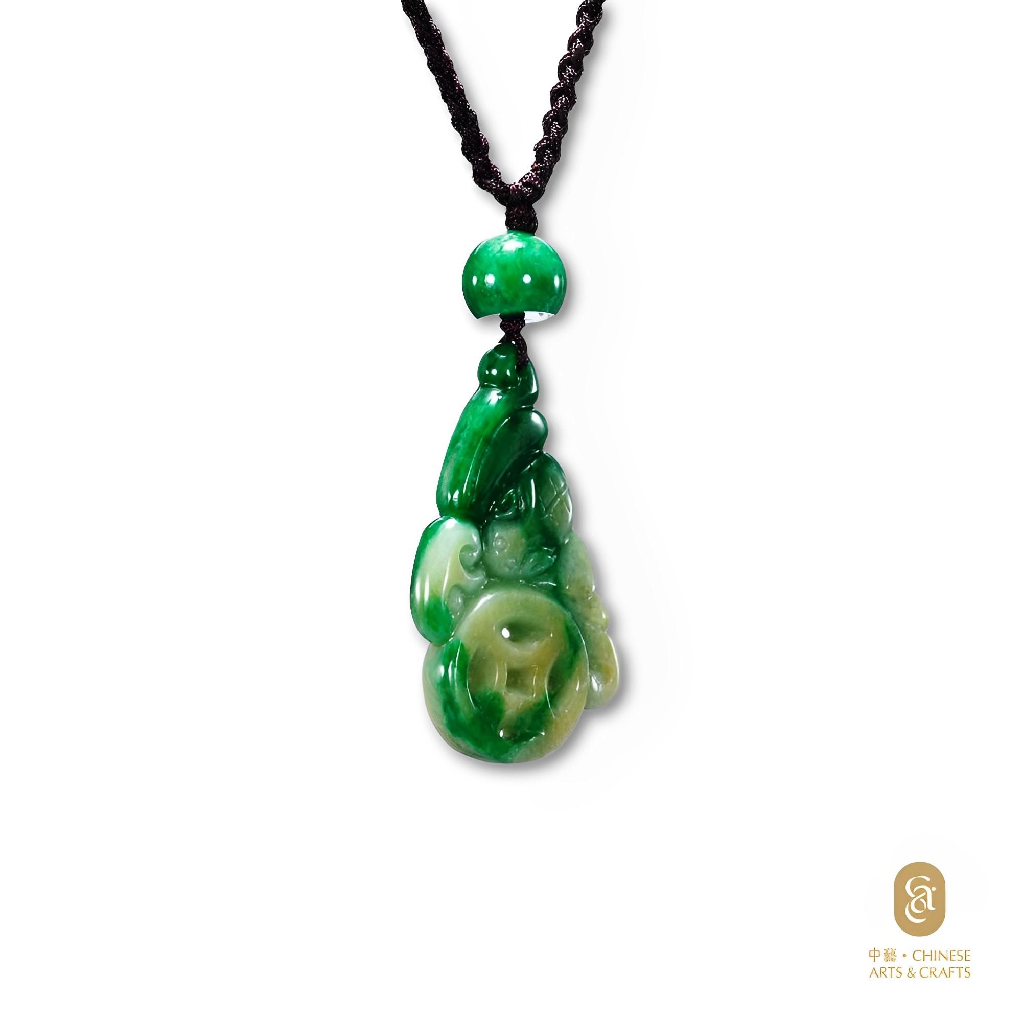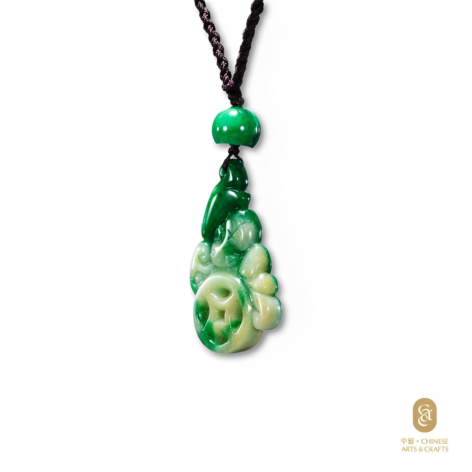 天然翡翠(A玉)仿古蓮葉鳳鳥牌