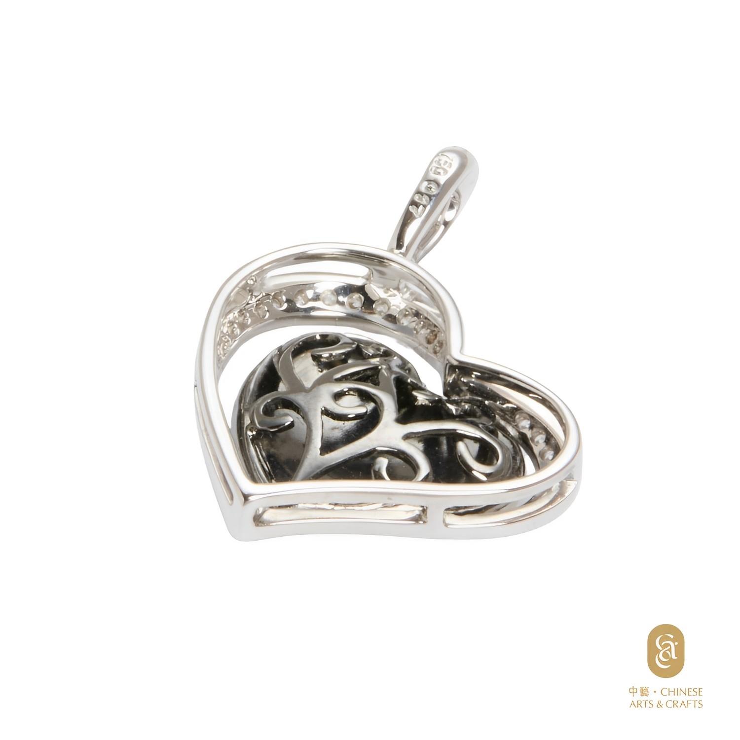 14K黃金鑲日本養珠鑽石花款吊墜7.75mm